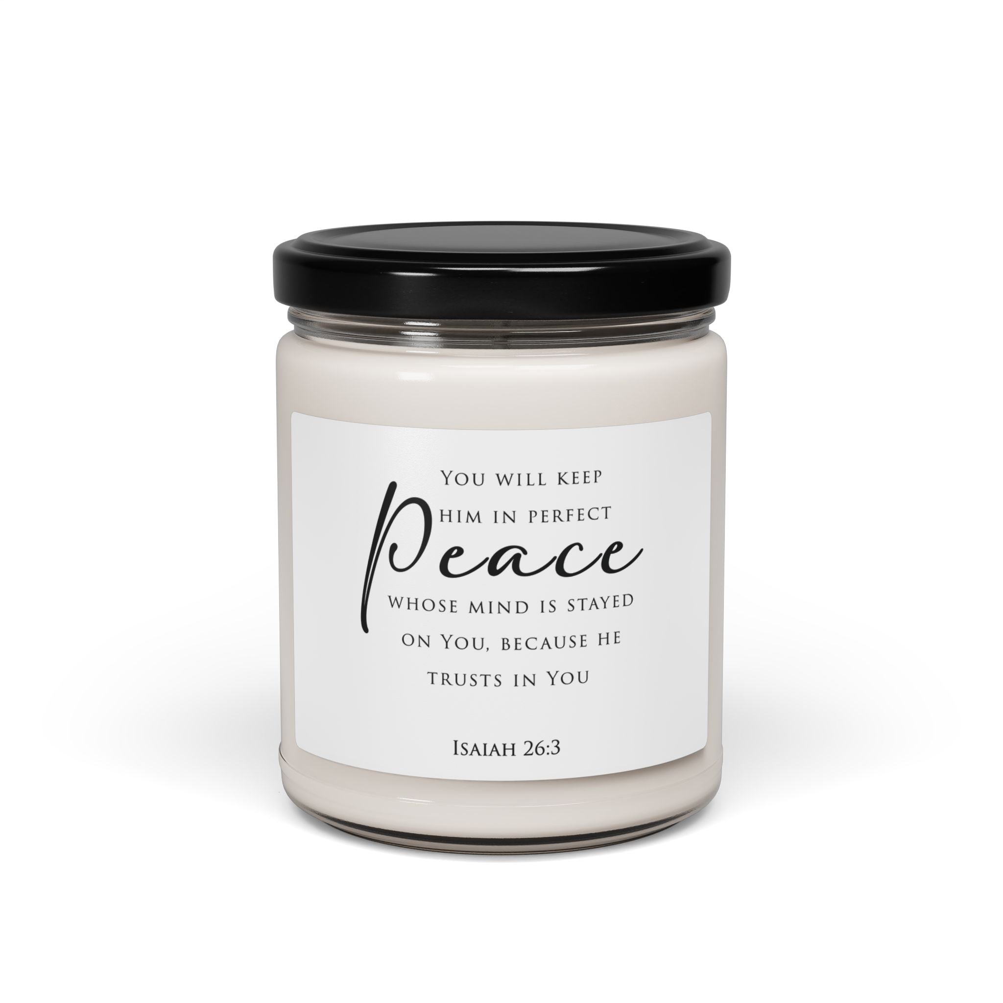 A calm, steady glow for anxious days and quiet nights. This 9oz soy candle features Isaiah 26:3, with “Peace” as the focal word, offering a gentle reminder that God keeps the trusting heart in perfect peace. It is a small ritual for slowing down, breathing deeper, and returning your thoughts to Him.