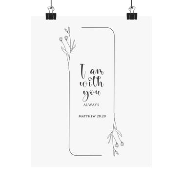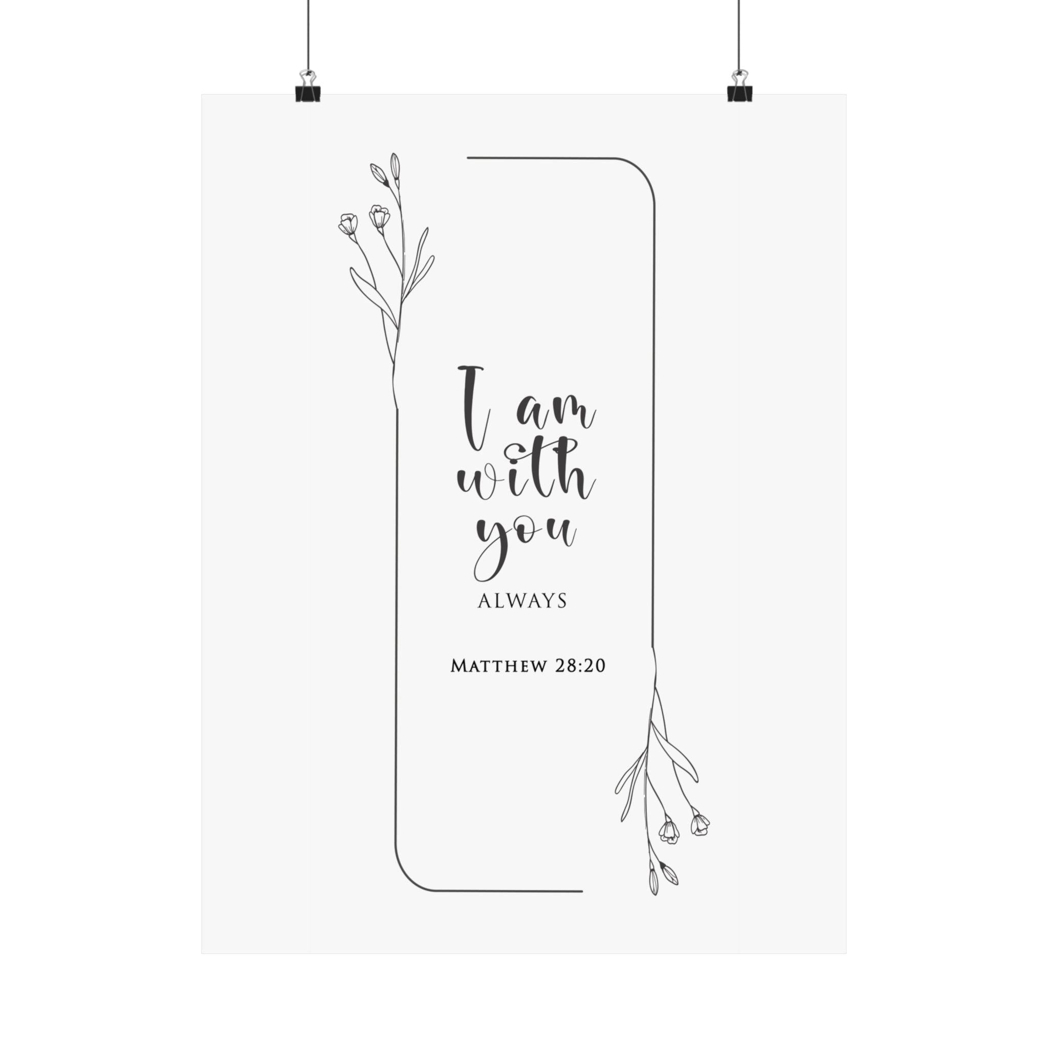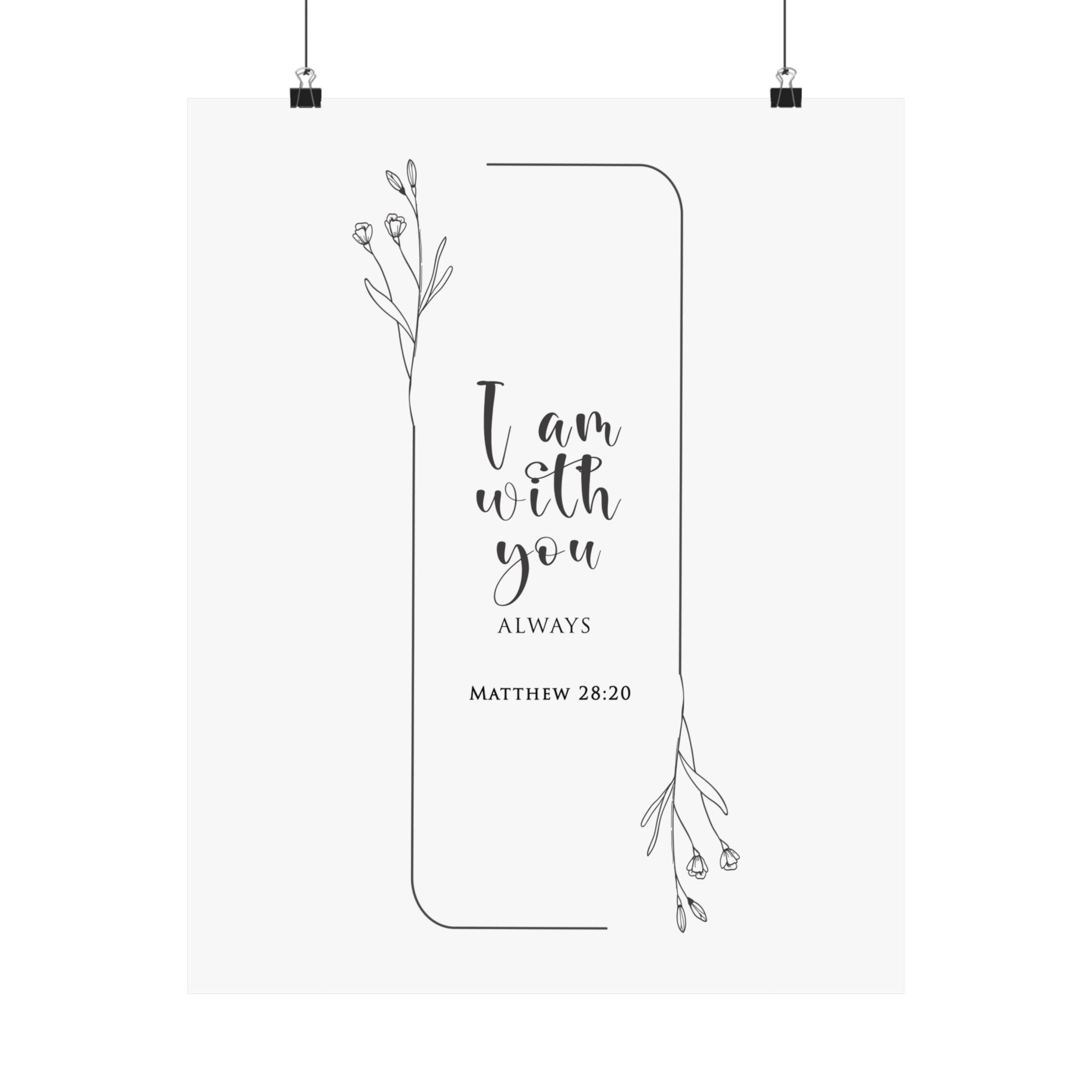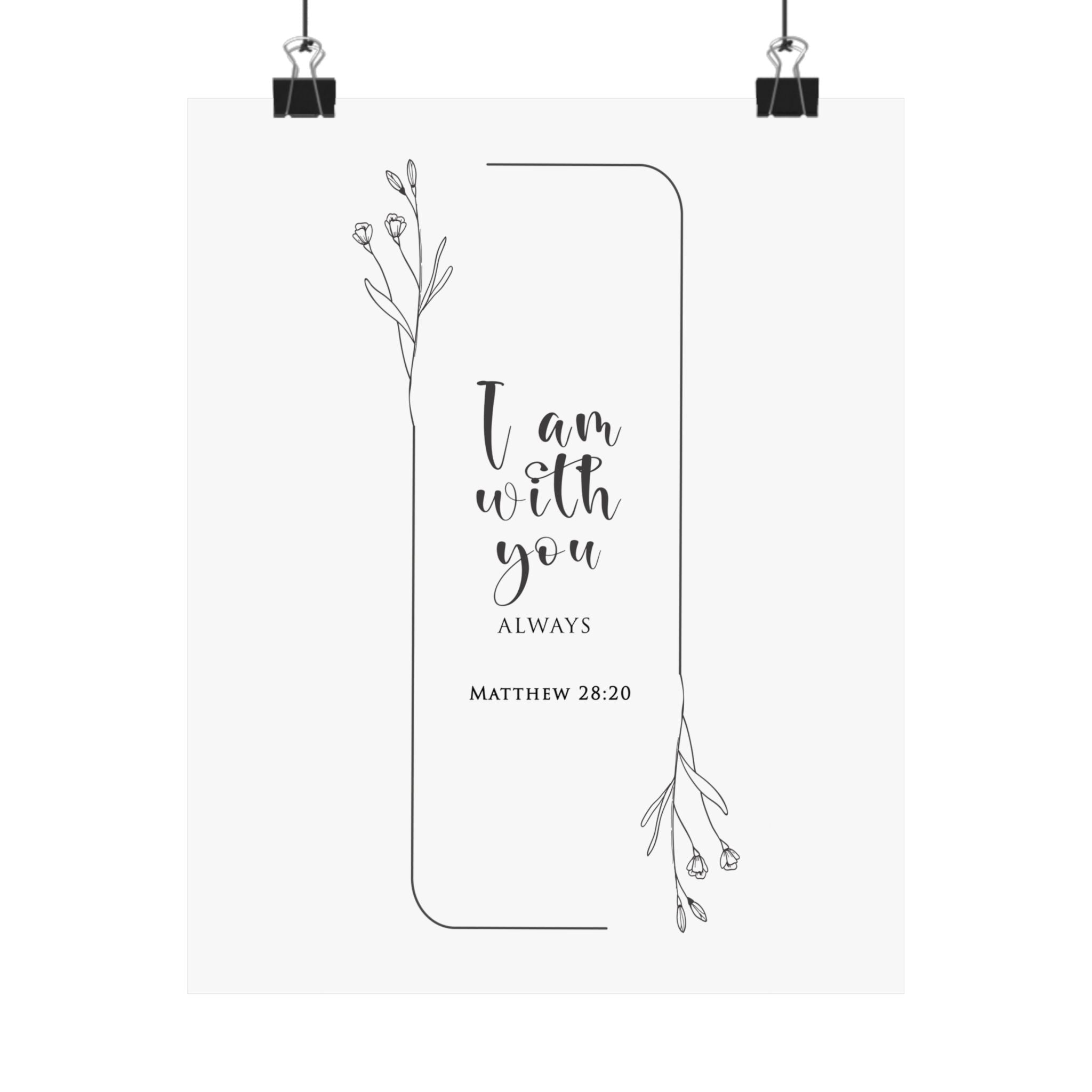 Faith Culture I Am With You Always Matthew 28:20 Christian Matte Poster | Minimal Floral Scripture Wall Art Print