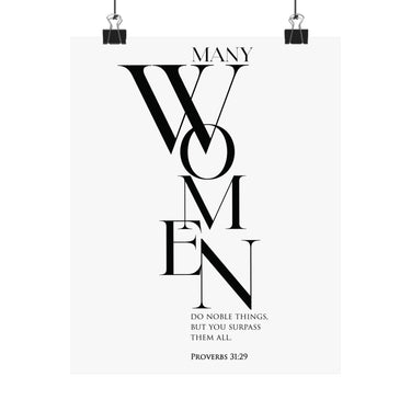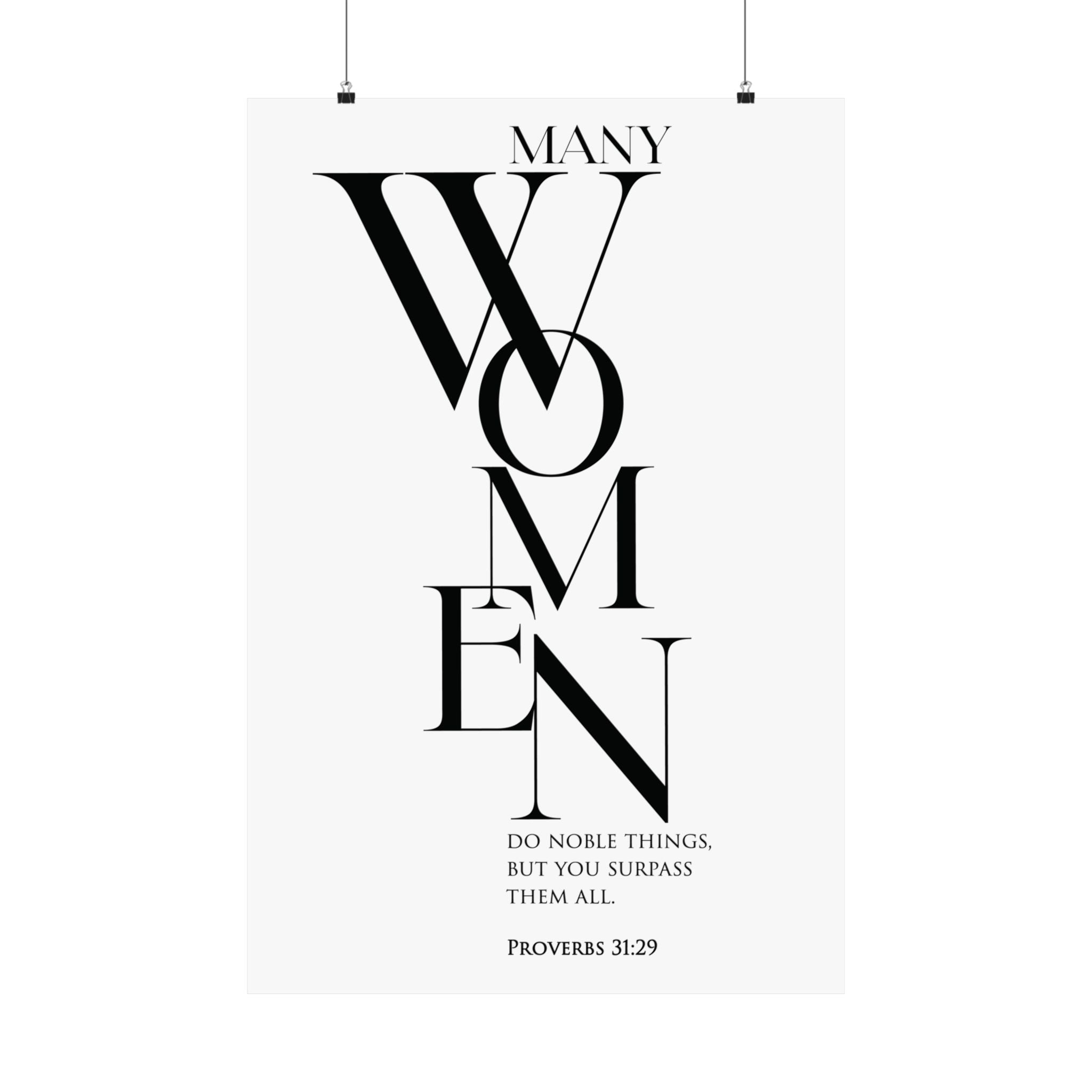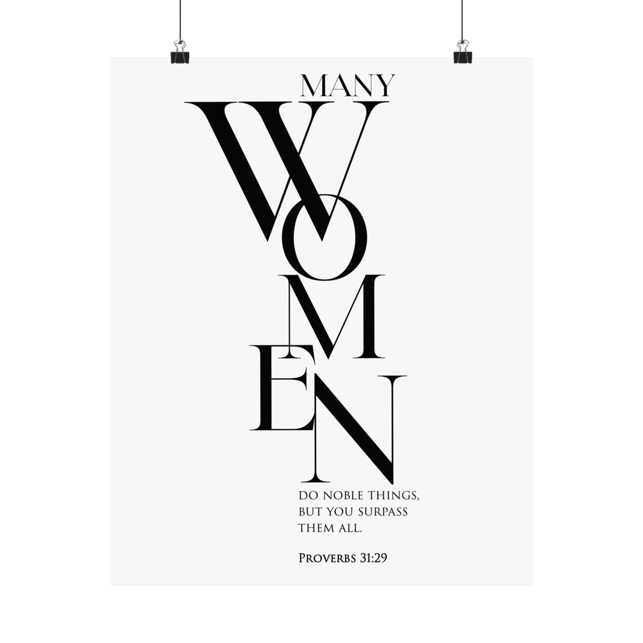 Faith Culture Many Women Do Noble Things Proverbs 31:29 Christian Matte Poster | Minimalist Scripture Wall Art Print