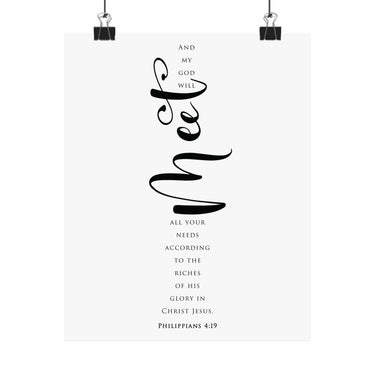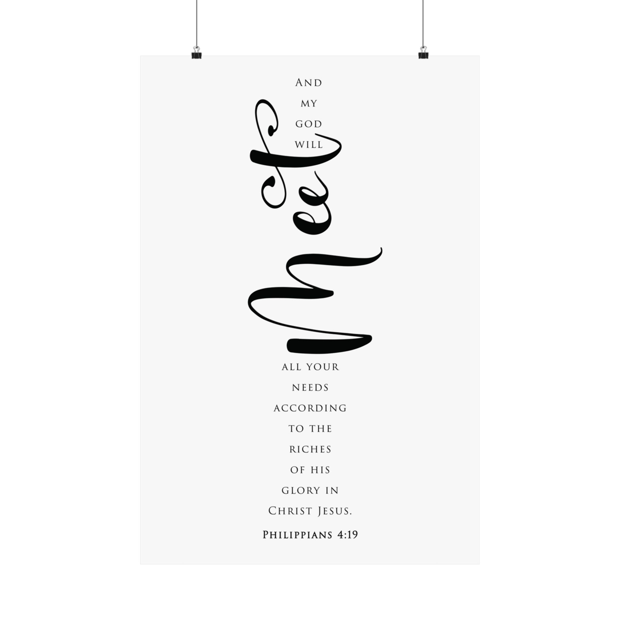 Faith Culture My God Will Supply Philippians 4:19 Christian Matte Poster | Provision Scripture Wall Art Print