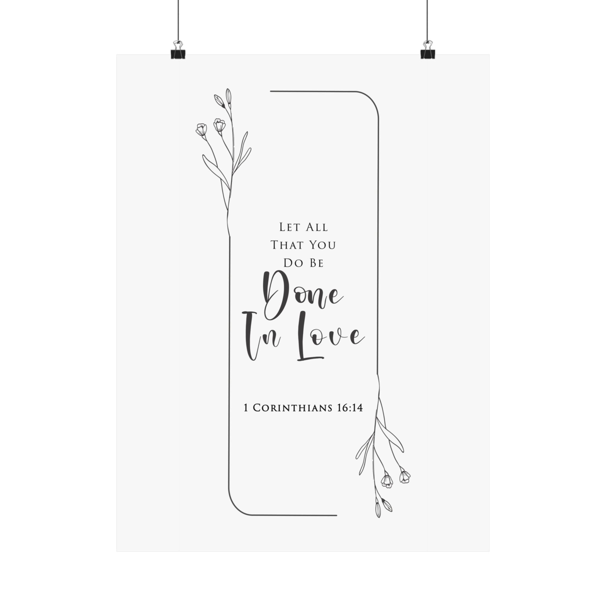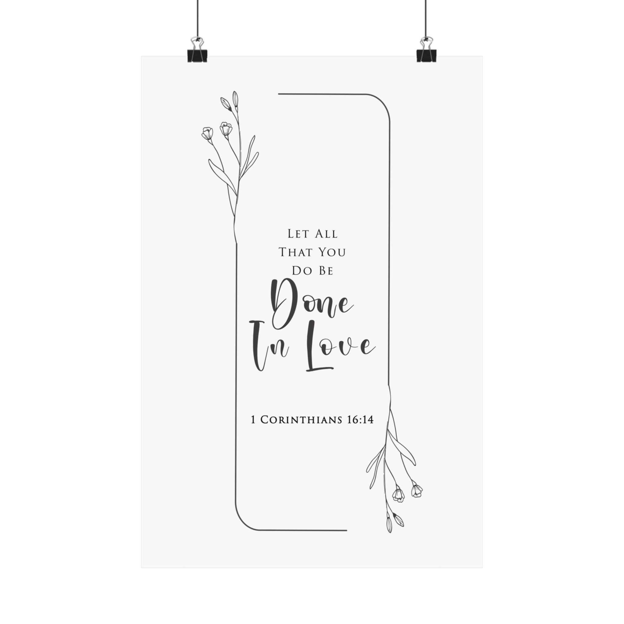 Faith Culture One In Love 1 Corinthians 16:14 Christian Matte Poster | Minimal Floral Scripture Wall Art Print