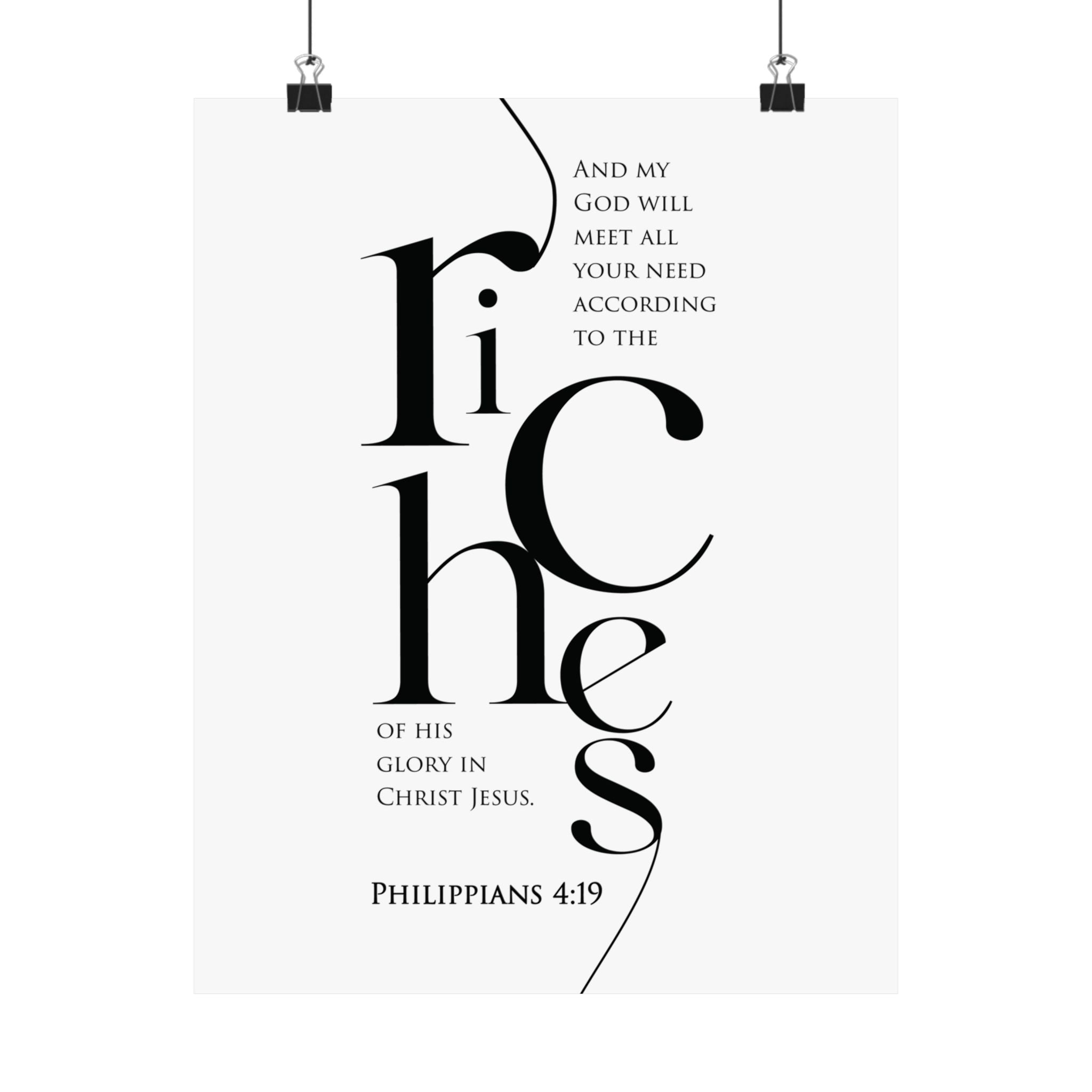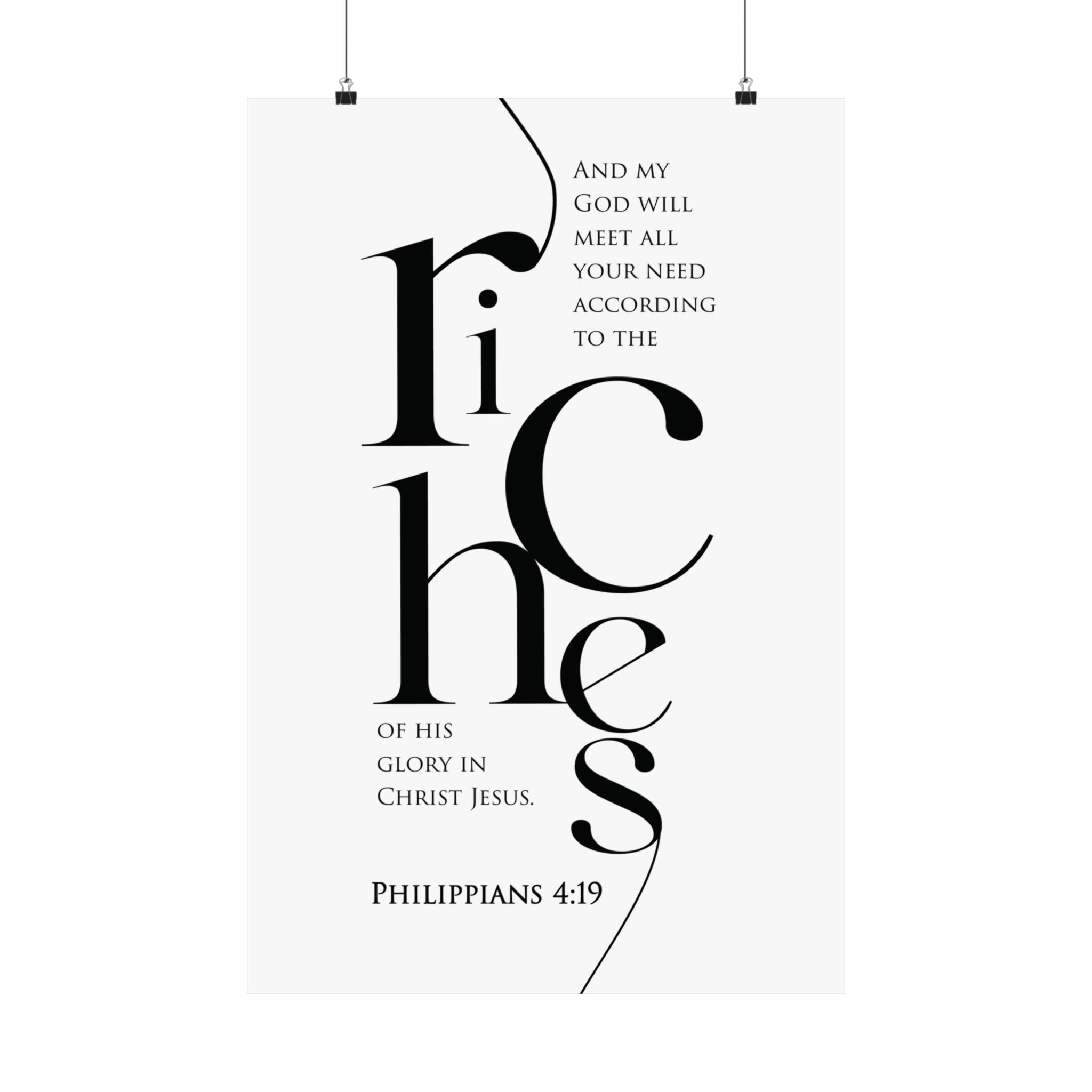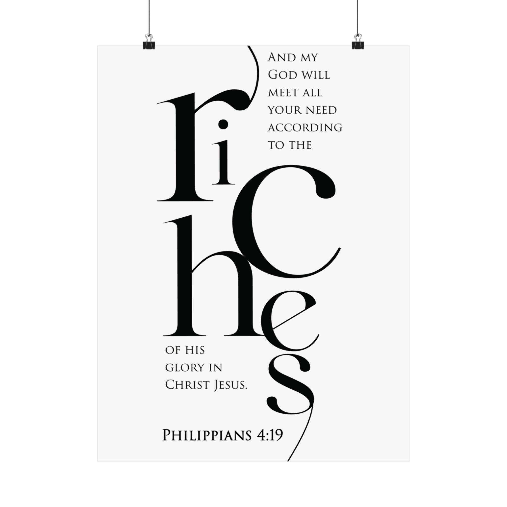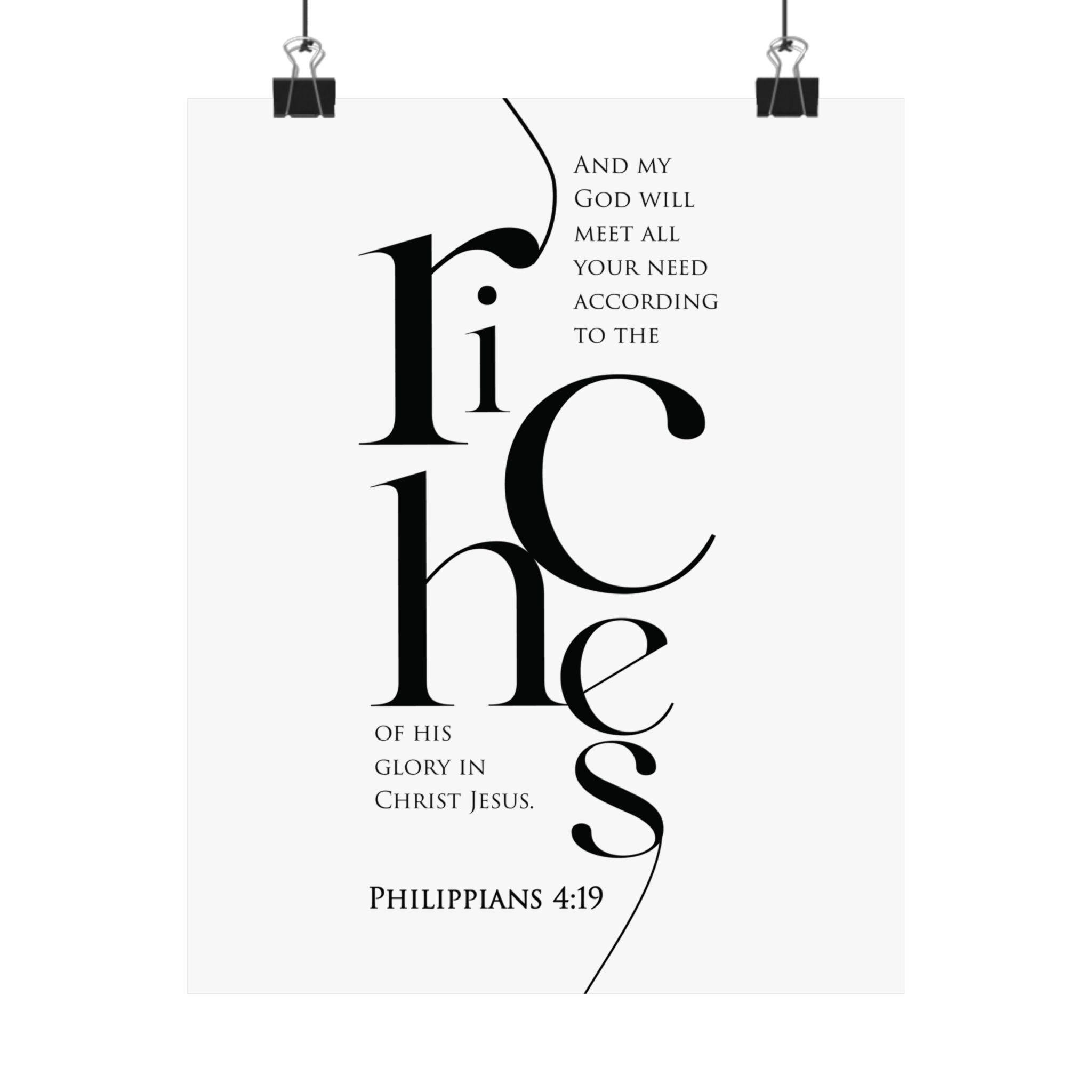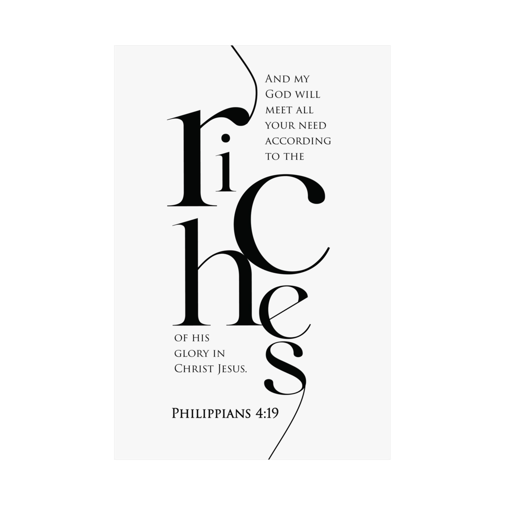 Faith Culture Riches Philippians 4:19 Christian Matte Poster | Scripture Wall Art Print