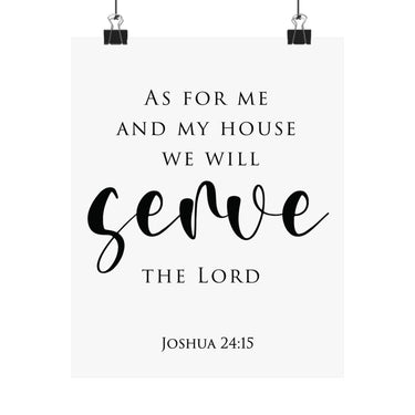 Warm and purposeful, this matte vertical poster features the well loved declaration from Joshua 24:15, “As for me and my house, we will serve the Lord.” The simple black and white typography makes it timeless and easy to place in any home style.