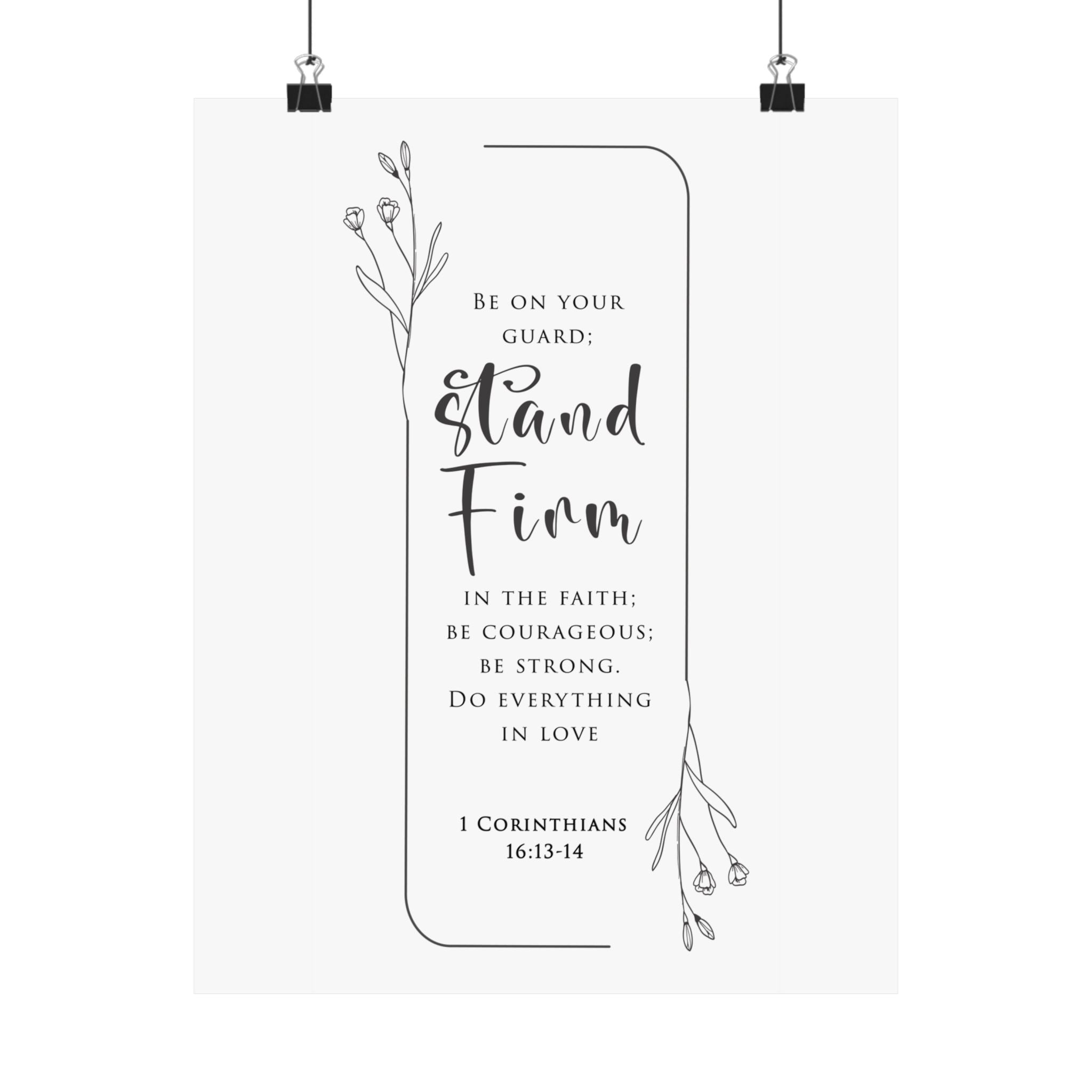 Faith Culture Stand Firm 1 Corinthians 16:13 14 Christian Matte Poster | Be Courageous Be Strong Scripture Wall Art Print