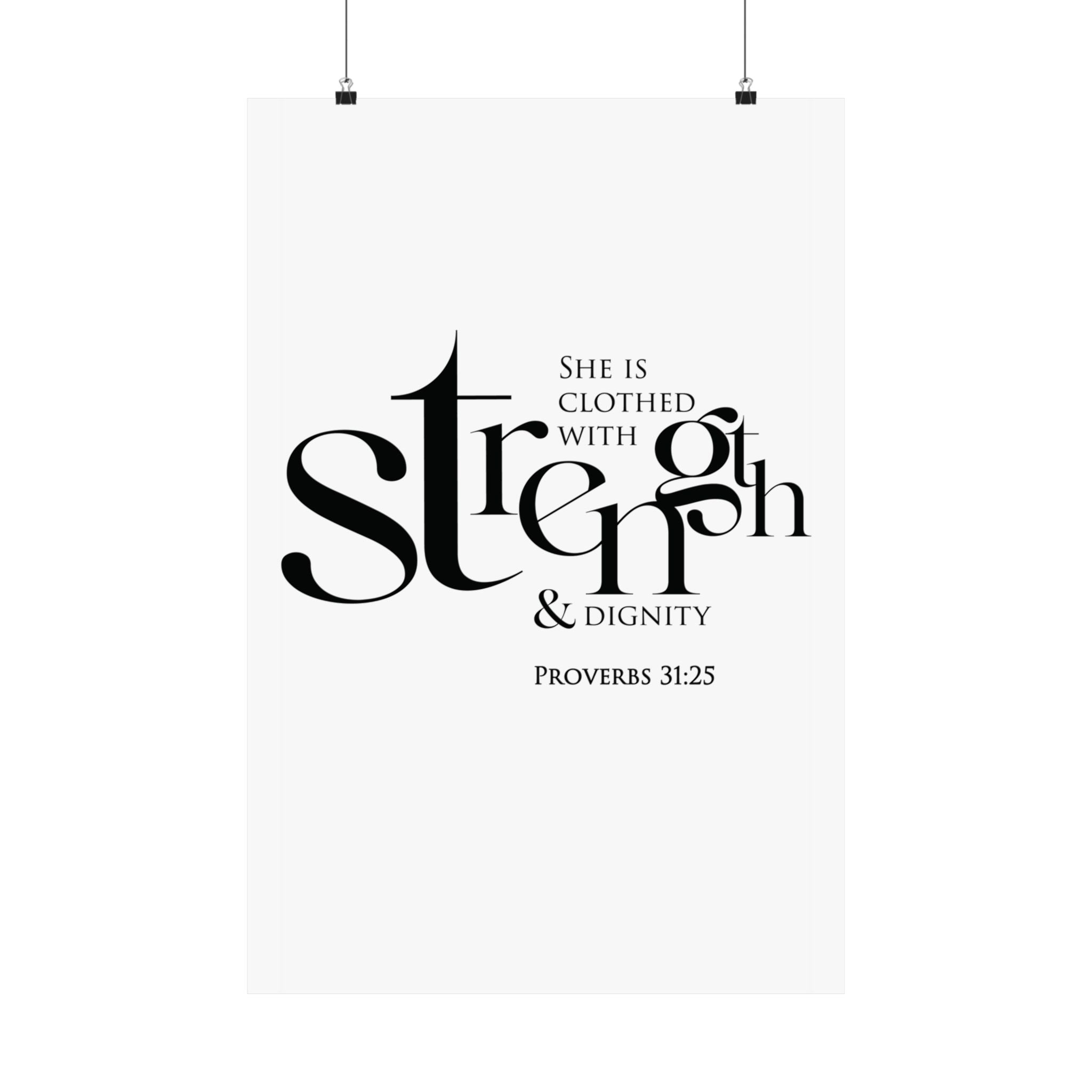 Faith Culture Strength And Dignity Proverbs 31:25 Christian Matte Poster | Scripture Wall Art Print
