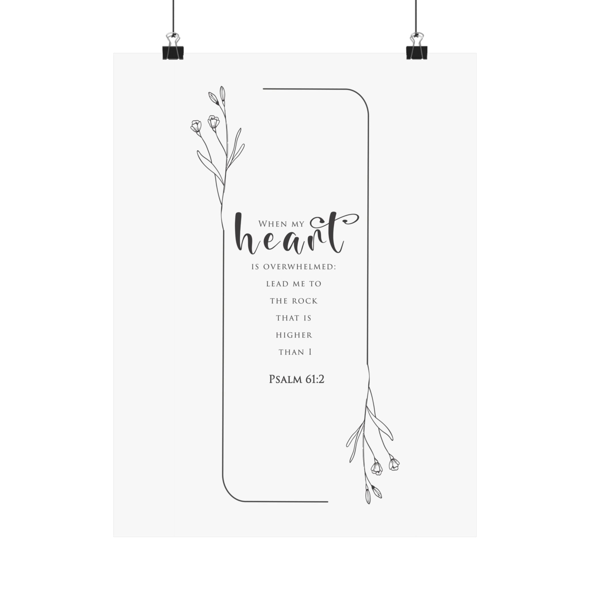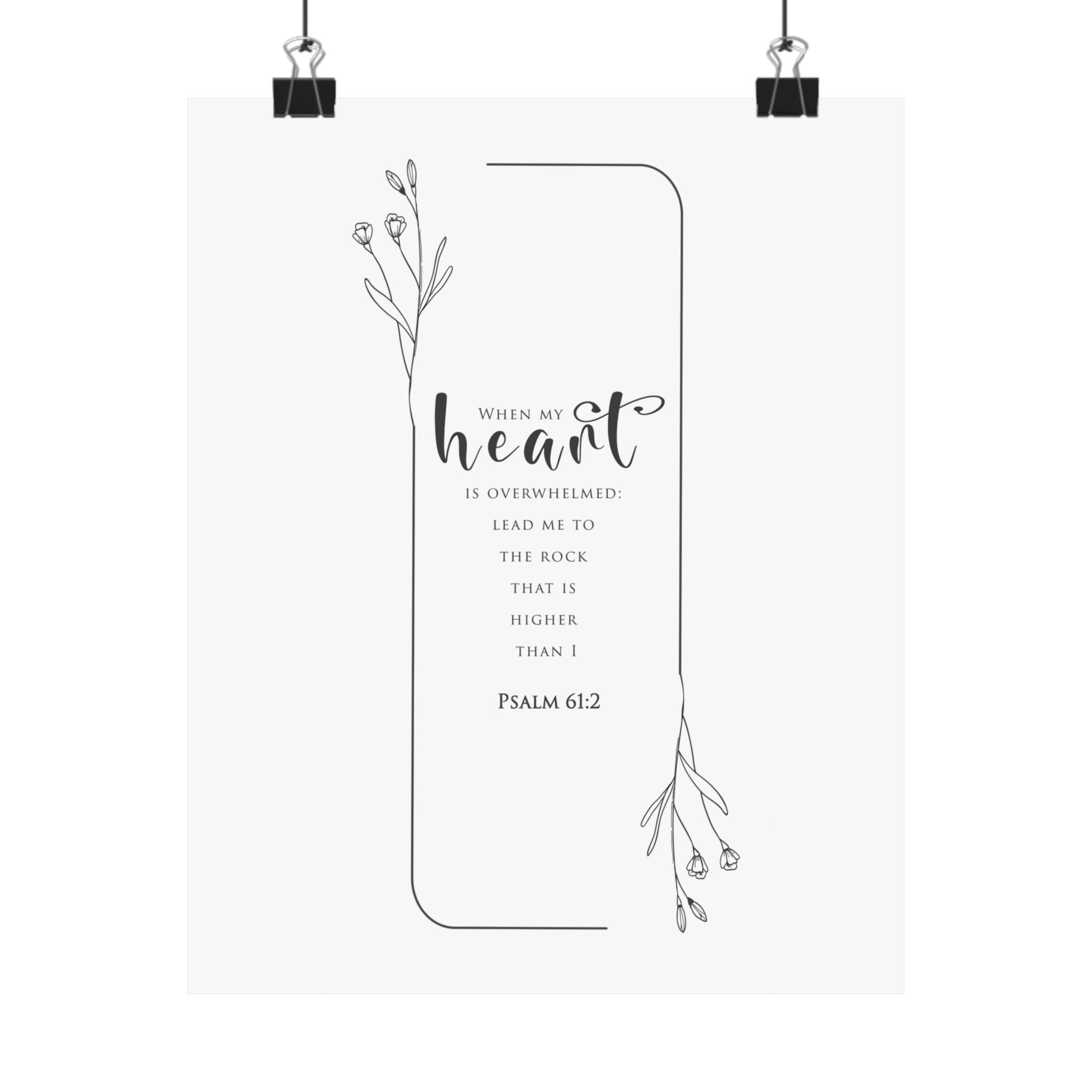 Faith Culture When My Heart Is Overwhelmed Psalm 61:2 Christian Matte Poster | Minimal Floral Scripture Wall Art Print