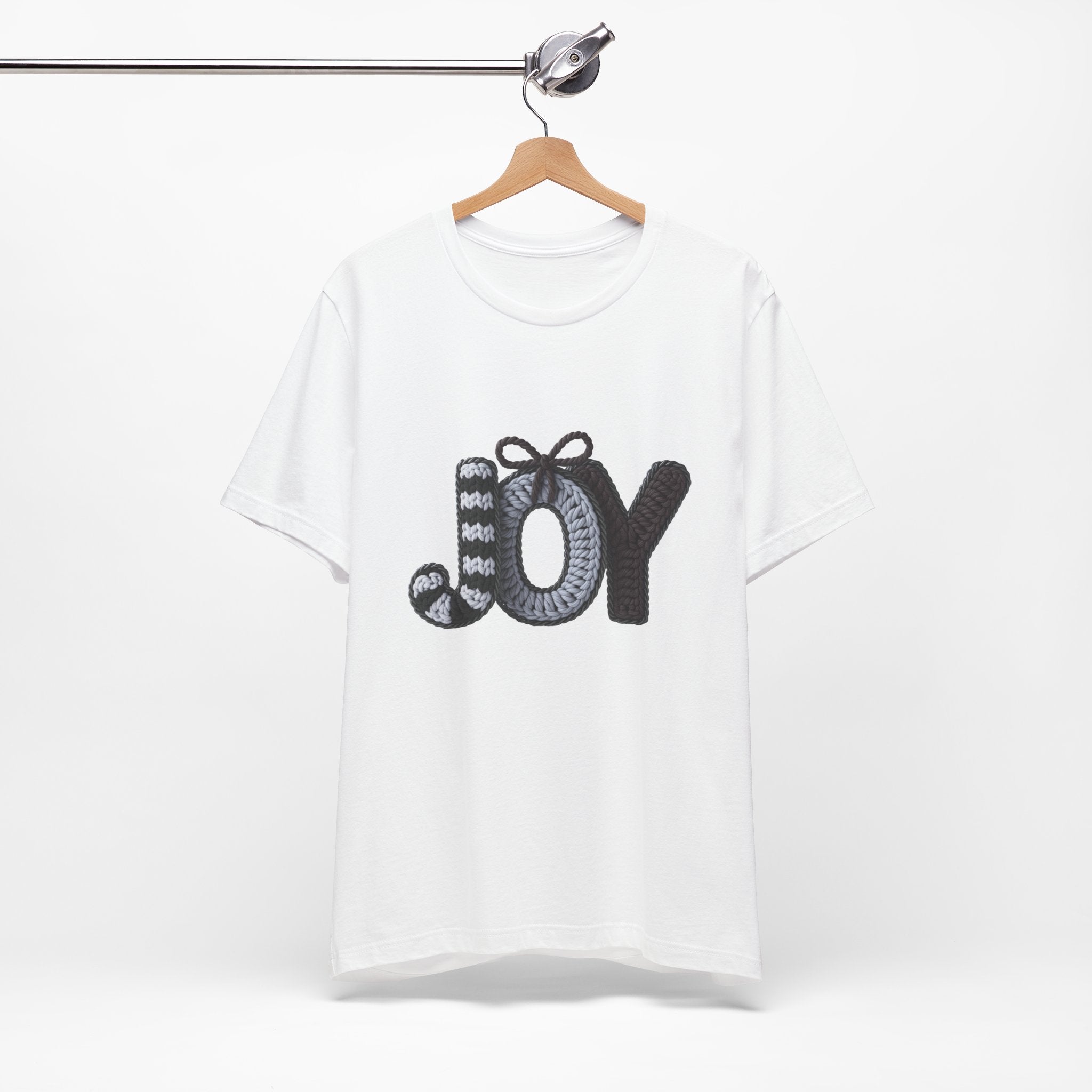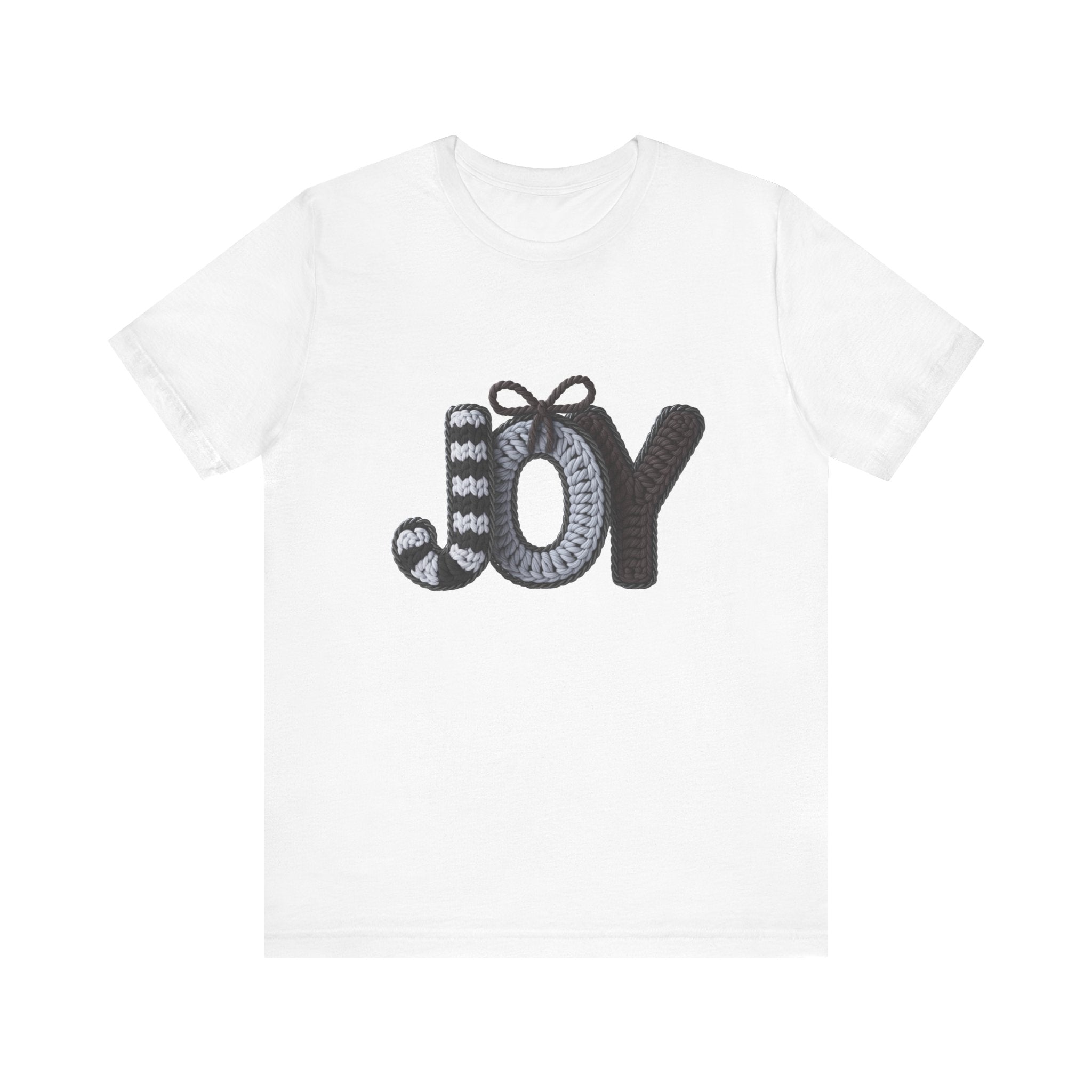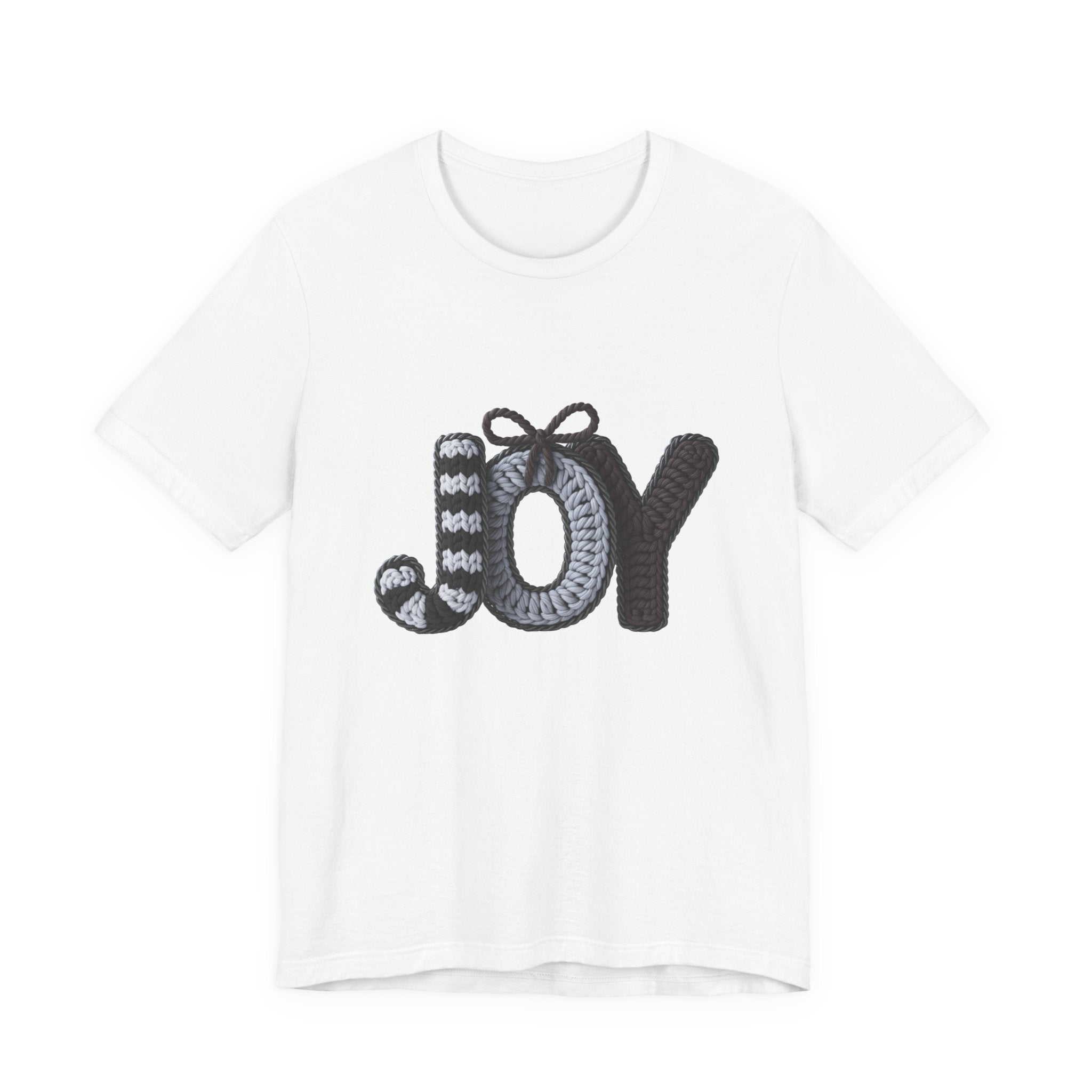 Faith Culture - Joy Knitted Letters Unisex T-Shirt – White | Cozy Christian Christmas Tee