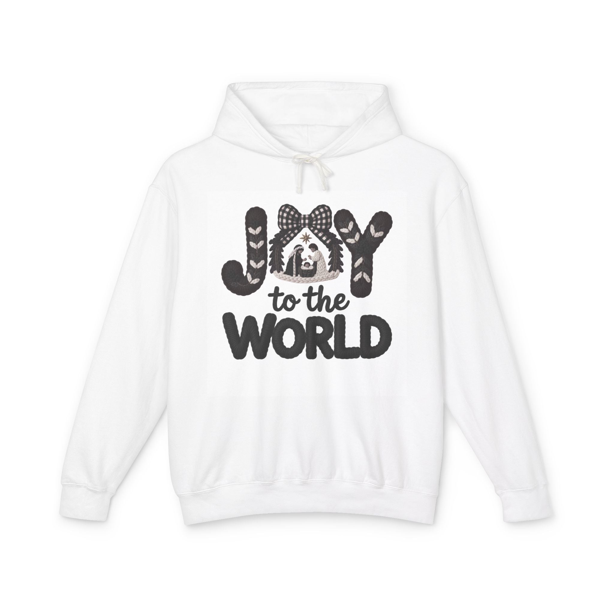 Wrap yourself in the story of Christmas with this Joy to the World nativity hoodie. The knitted-style JOY letters frame a manger scene under a checked bow, with Mary, Joseph, and the newborn King gathered beneath a shining star and the words “to the WORLD” anchoring the design. It is a beautiful, wearable way to share the good news of Jesus wherever you go.