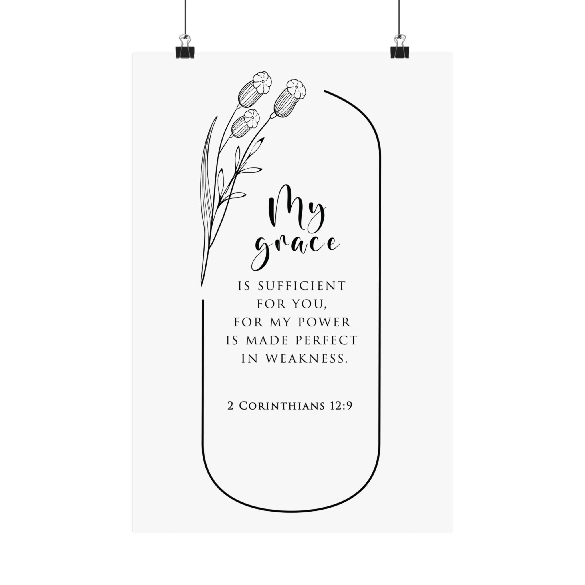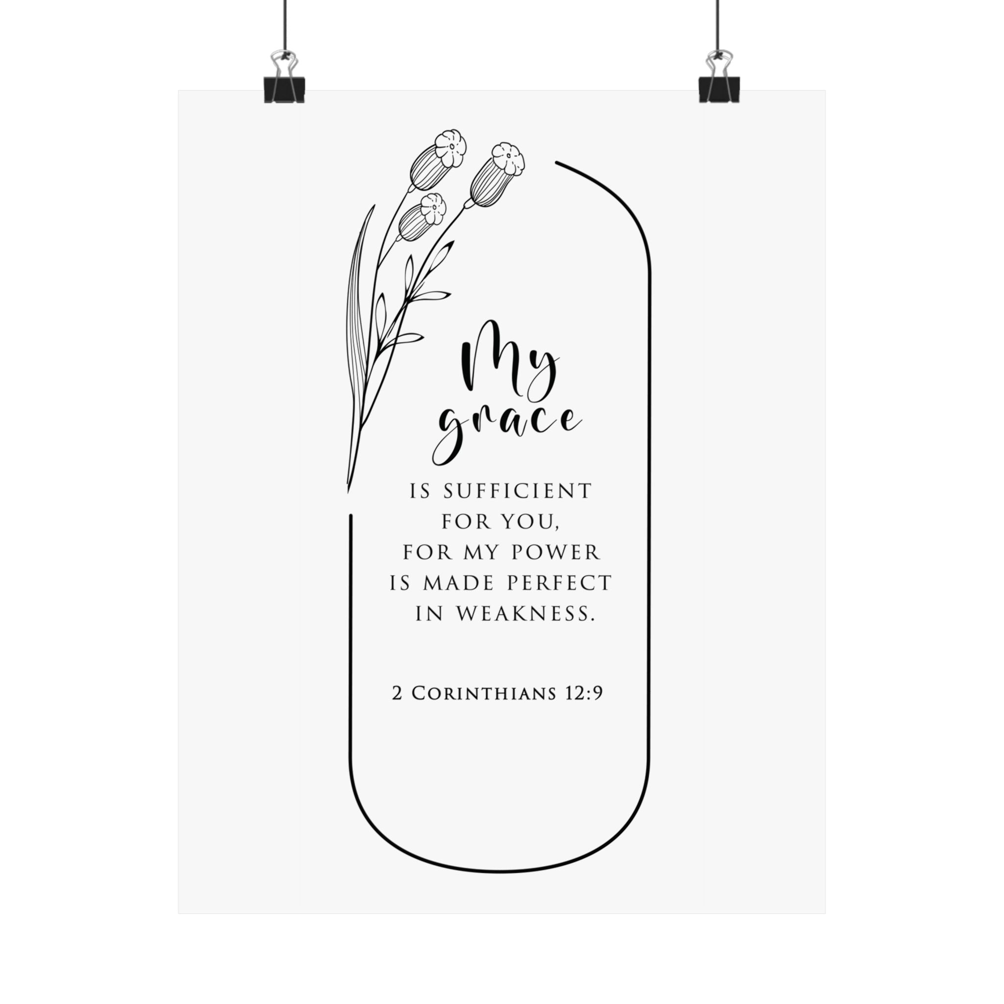 Faith Culture My Grace Is Sufficient 2 Corinthians 12:9 Christian Matte Poster | Minimal Floral Scripture Wall Art Print