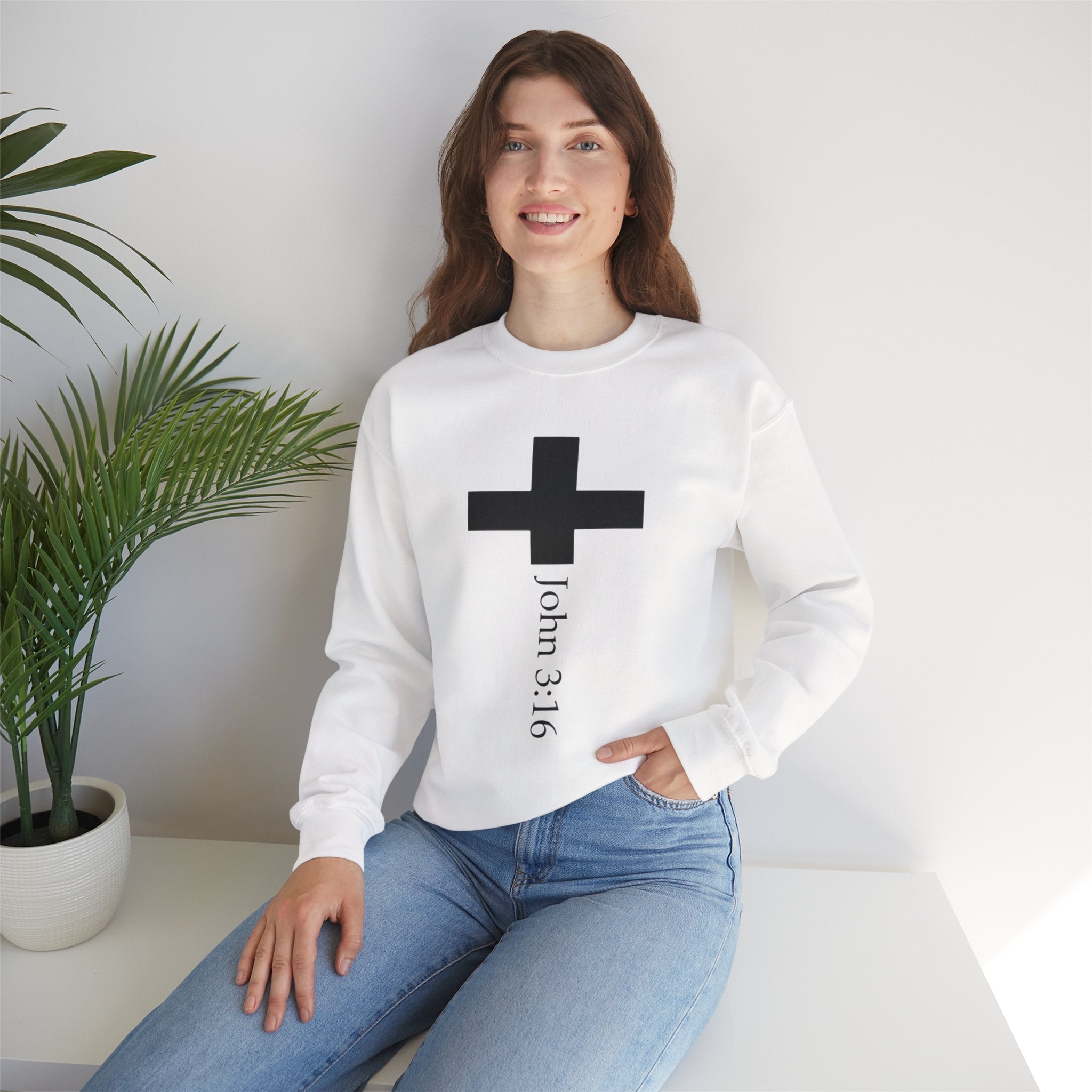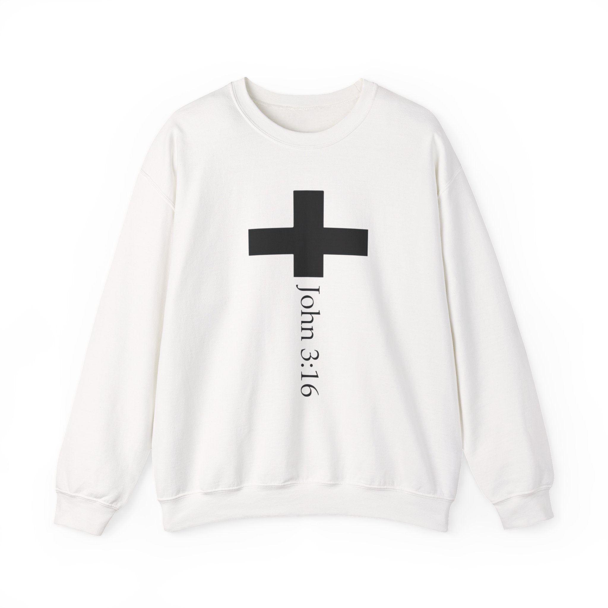 Faith Culture - John 3:16 Cross Crewneck Sweatshirt – White | Minimalist Christian Fleece Pullover