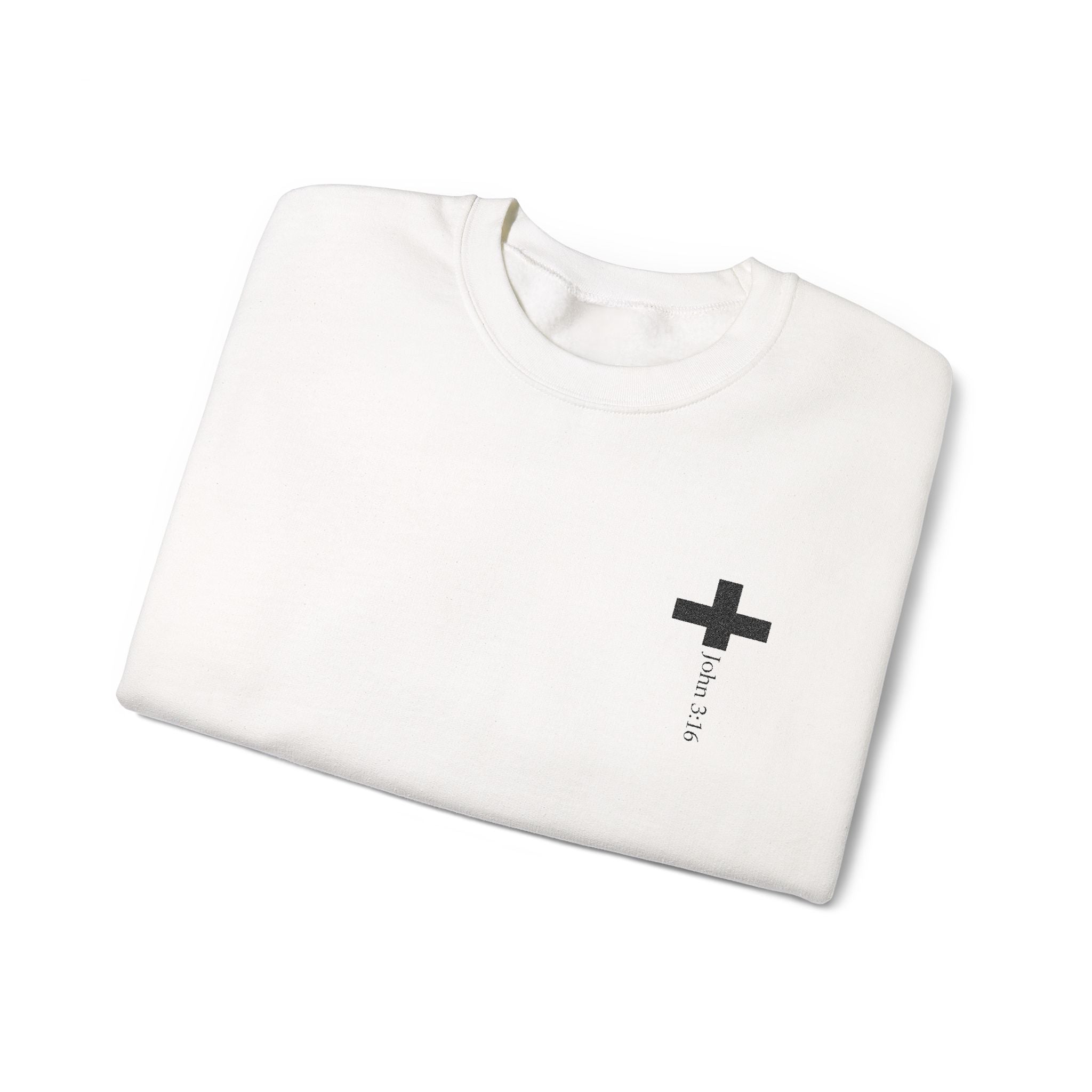 Faith Culture - John 3:16 Cross Embroidered Crewneck Sweatshirt – White | Minimalist Christian Fleece Pullover