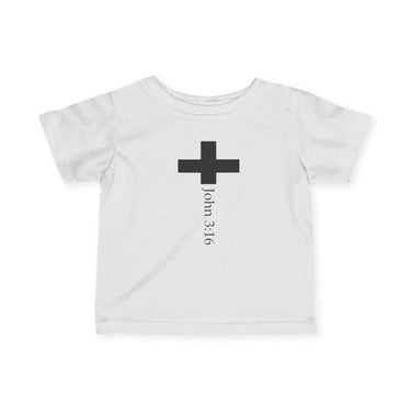 Faith Culture - John 3:16 Cross Kids T Shirt – White | Minimalist Christian Tee for Children Product Description: