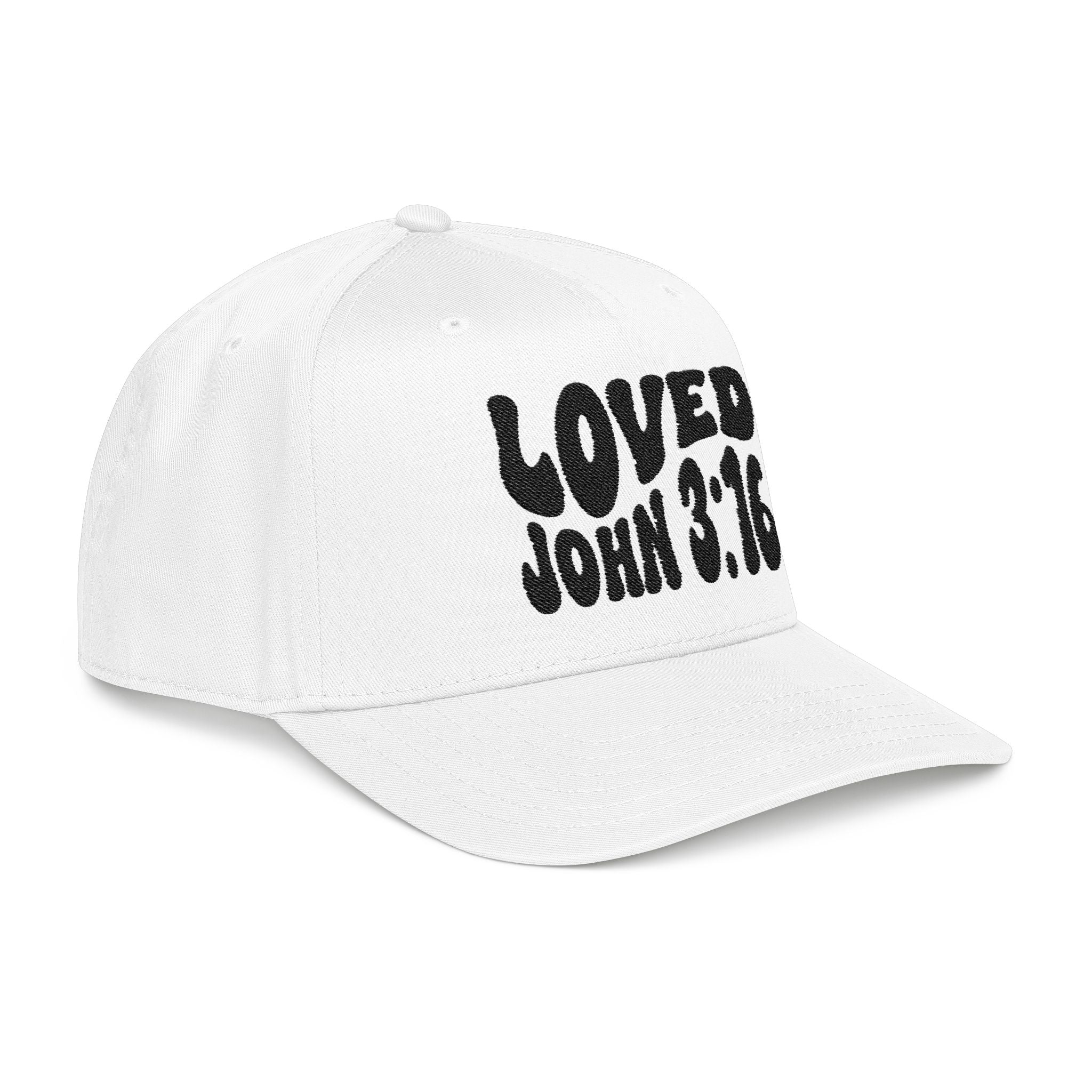 A clean, mid profile baseball cap that carries a quiet, heartfelt message. This white structured cap features bold “LOVED” with “John 3:16” beneath, a simple way to wear the truth that you are seen, held, and cared for. The five panel design and seamless front keep the look crisp and centered, while the soft sweatband and matching undervisor make it comfortable for all day wear. Finished with embroidery or DTF printing for a sharp, long lasting graphic, this is the kind of hat you reach for on morning walks, casual errands, church events, or community gatherings. Easy to style, easy to gift, and built to keep its shape.