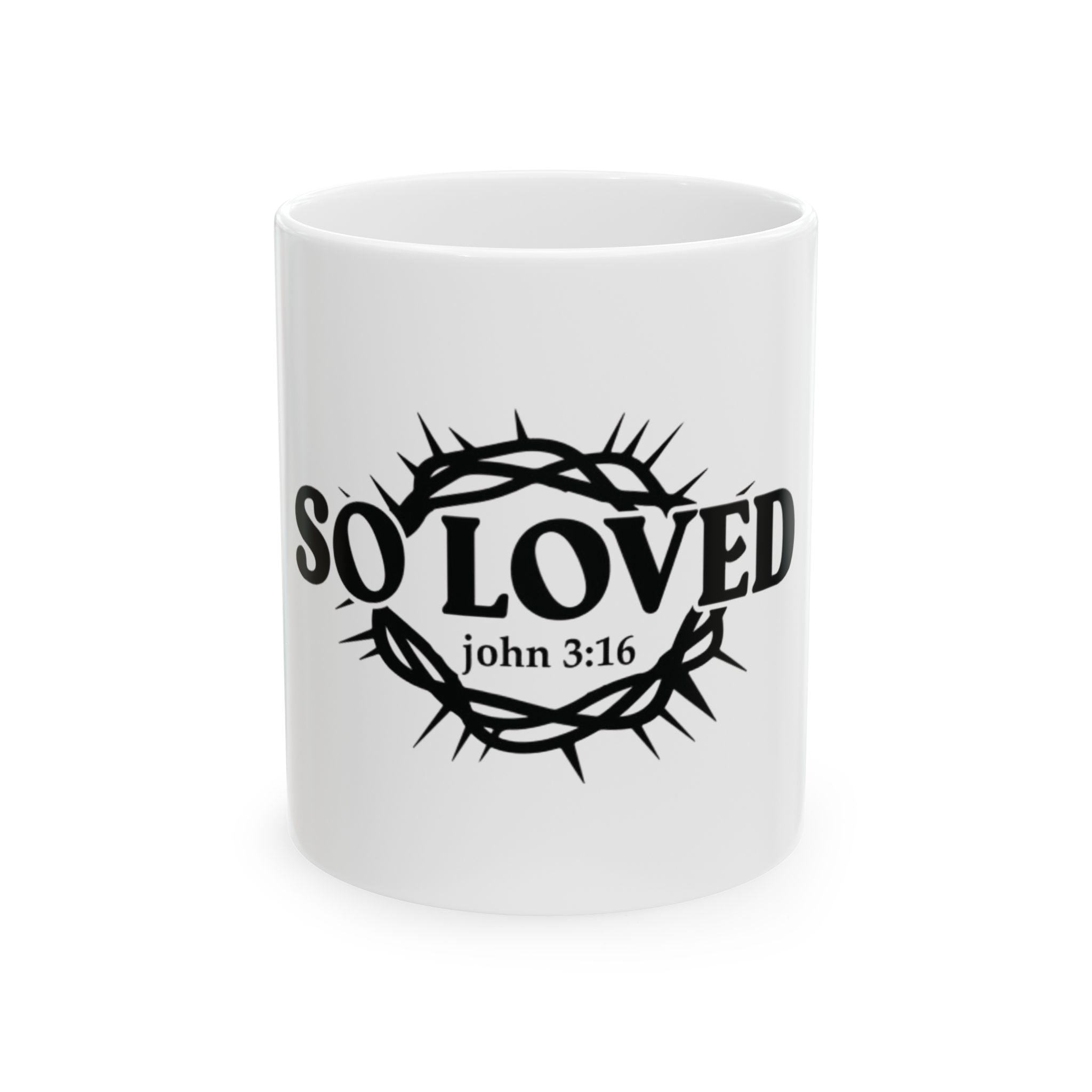 Faith Culture - So Loved John 3:16 Ceramic Mug – White | Crown of Thorns Christian Coffee Mug (11oz, 15oz)