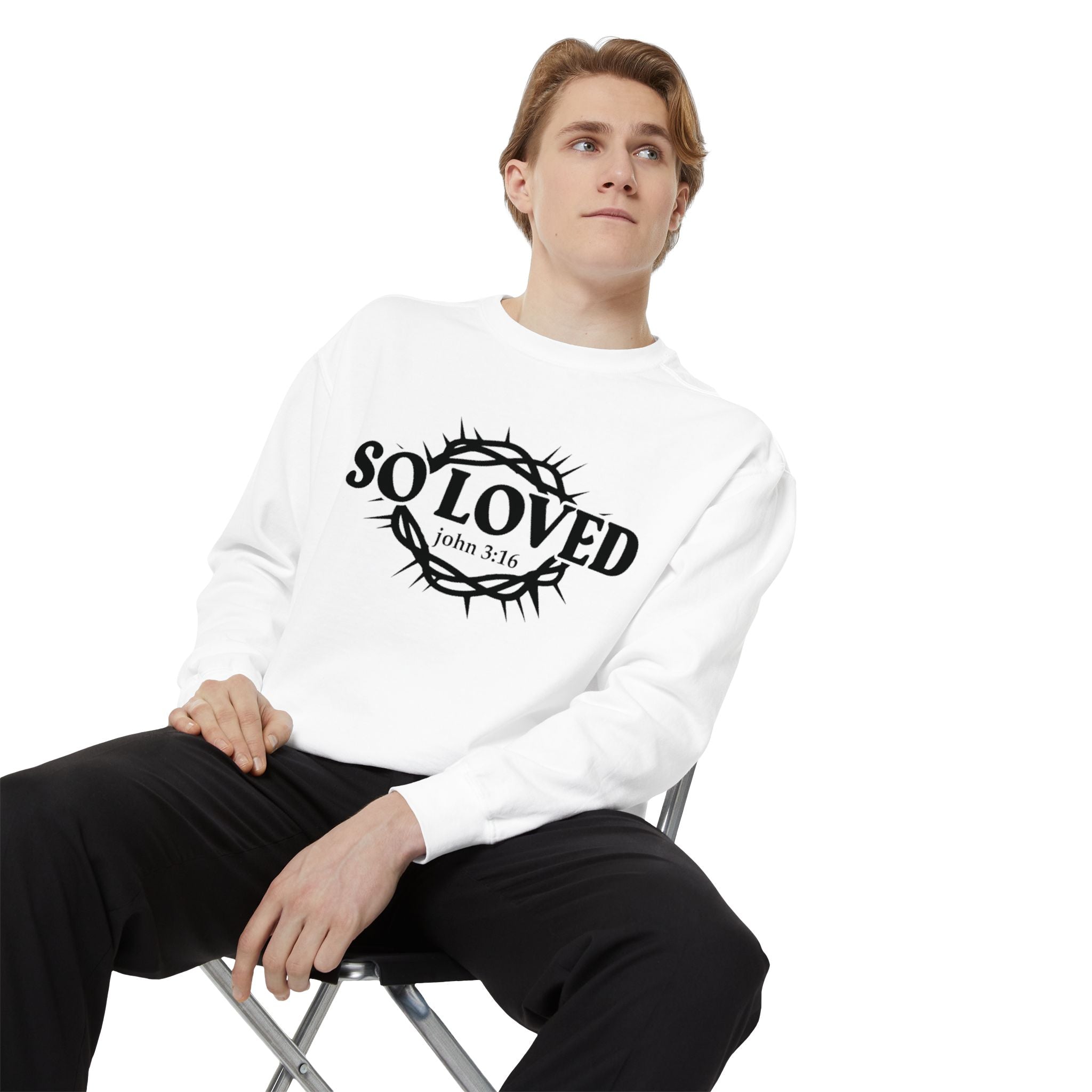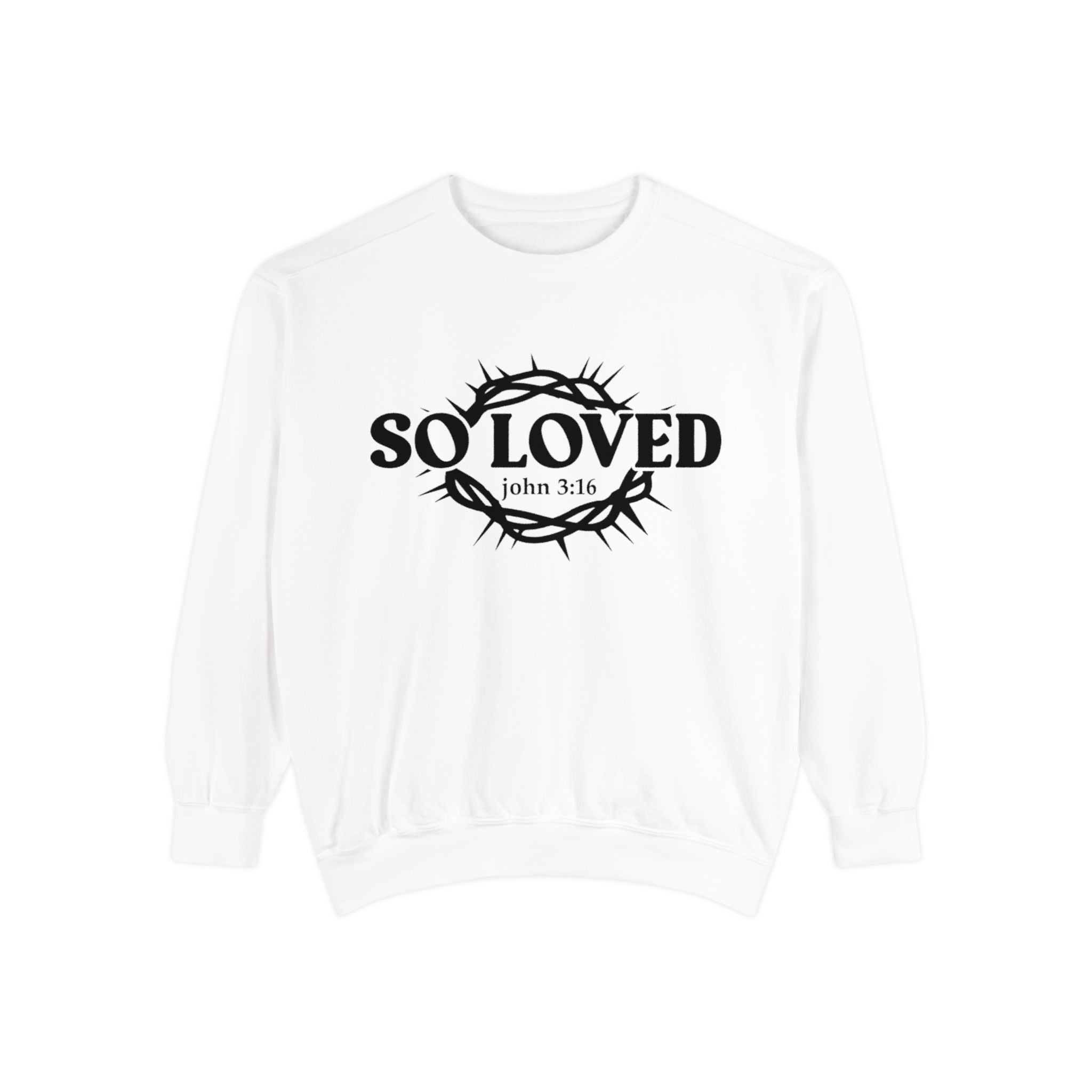 Faith Culture - So Loved John 3:16 Sweatshirt – White | Crown of Thorns Christian Oversized Pullover
