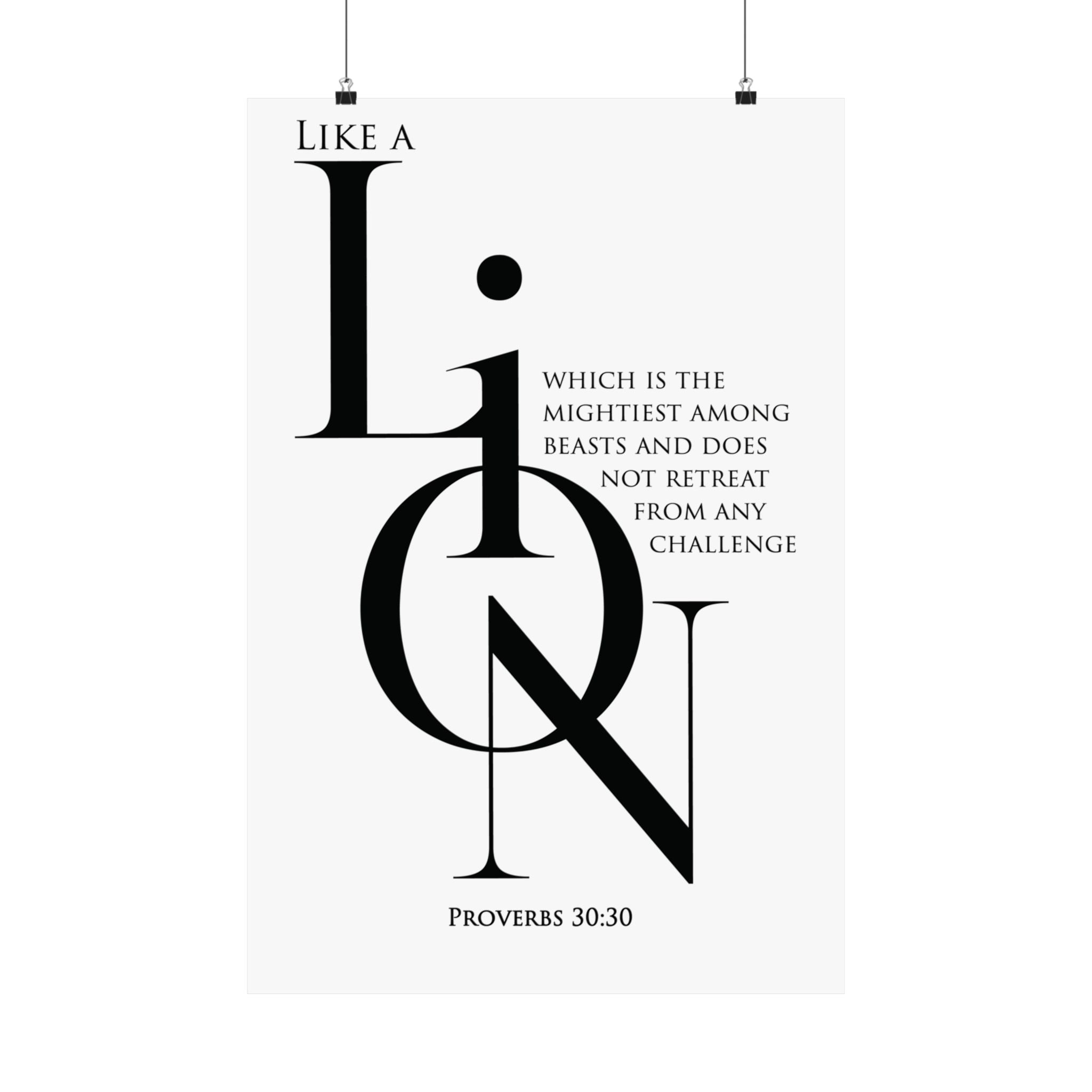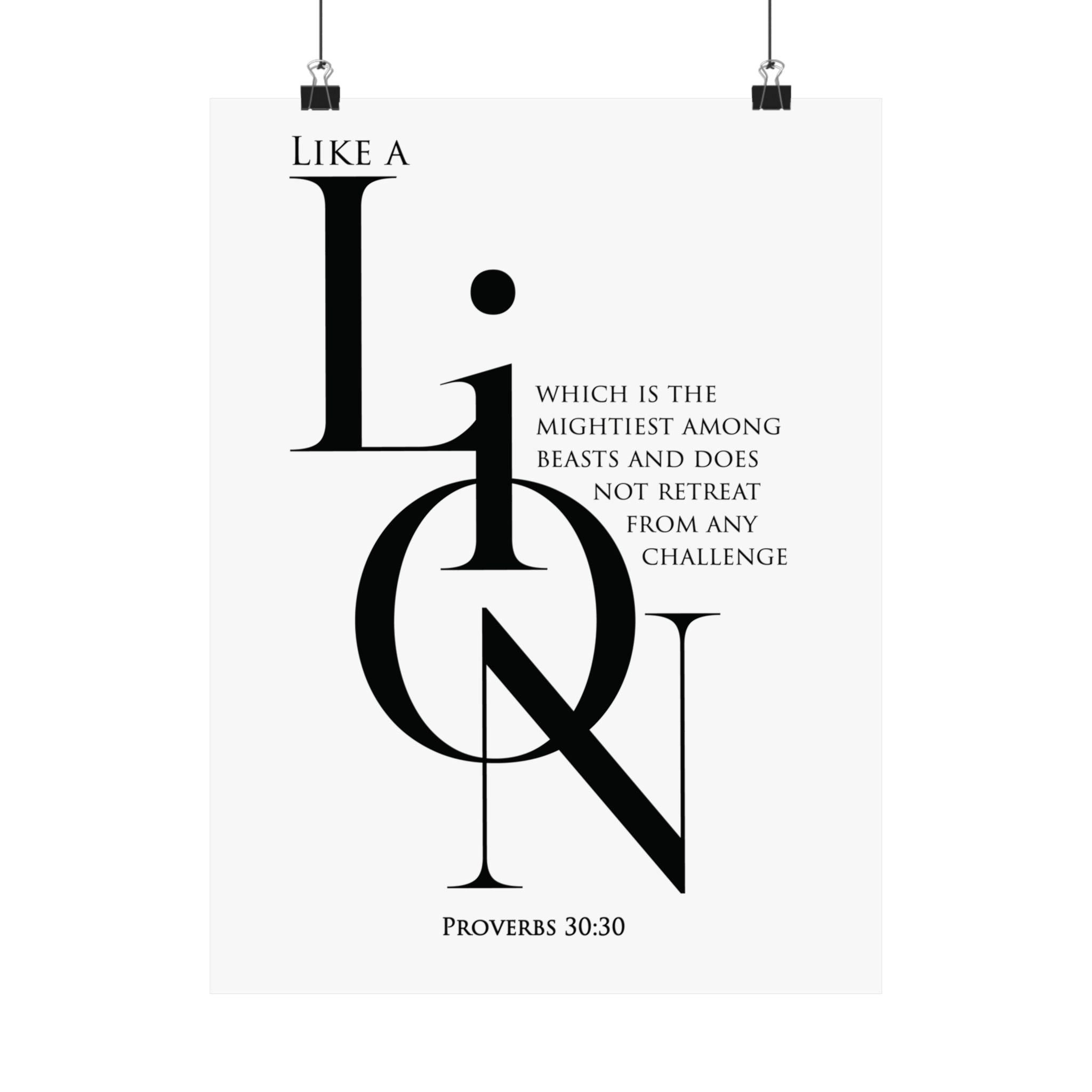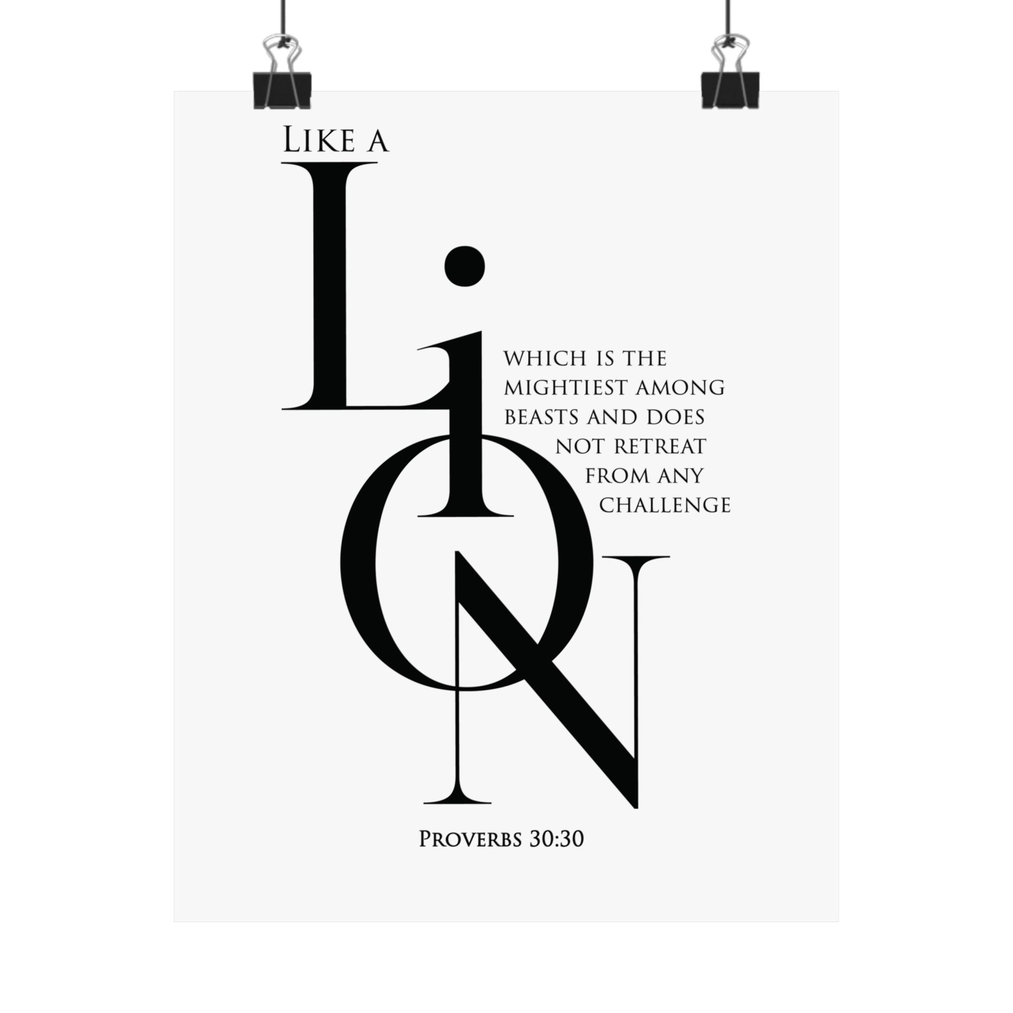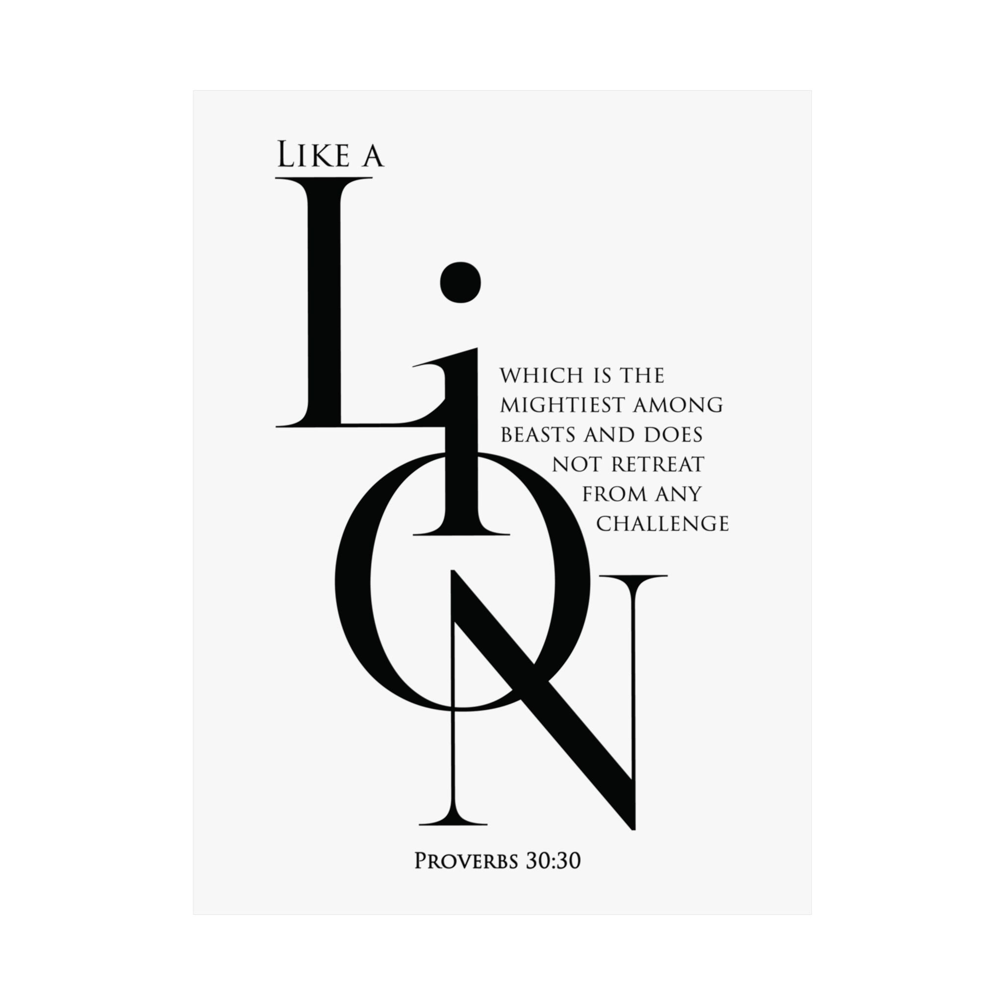 Faith Culture Like a Lion Proverbs 30:30 Christian Matte Poster | Minimalist Scripture Wall Art Print