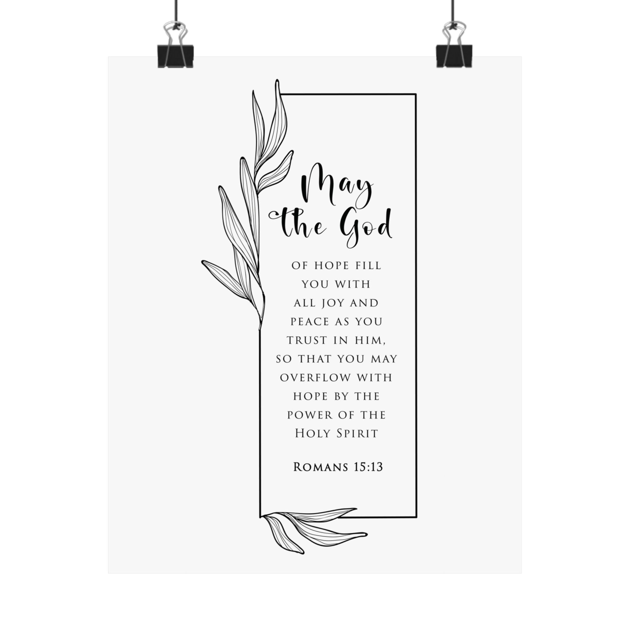 Faith Culture May the God of Hope Romans 15:13 Christian Matte Poster | Joy and Peace Scripture Wall Art Print