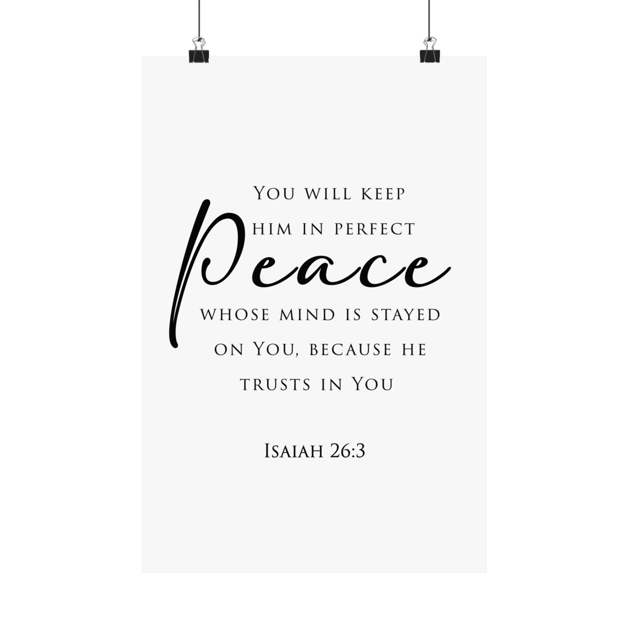 Faith Culture Perfect Peace Isaiah 26:3 Christian Matte Poster | Minimal Scripture Wall Art Print