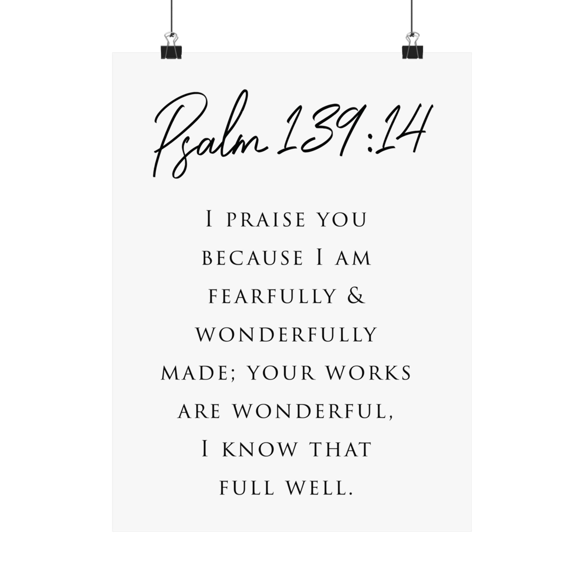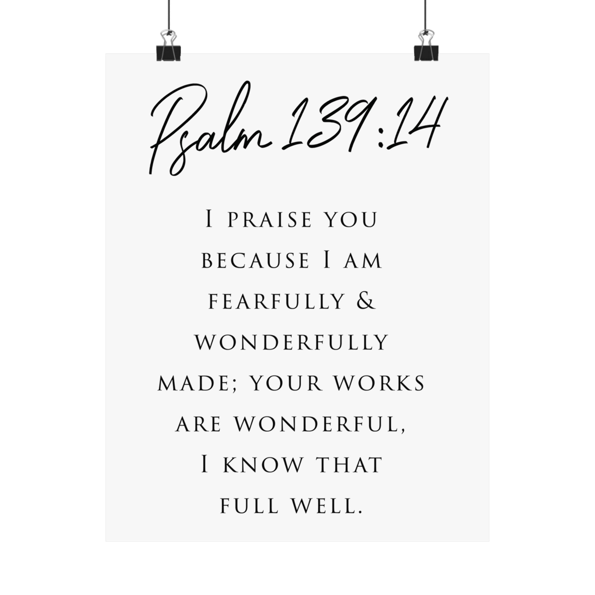 Faith Culture Fearfully And Wonderfully Made Psalm 139:14 Christian Matte Poster | Minimal Typography Scripture Wall Art Print