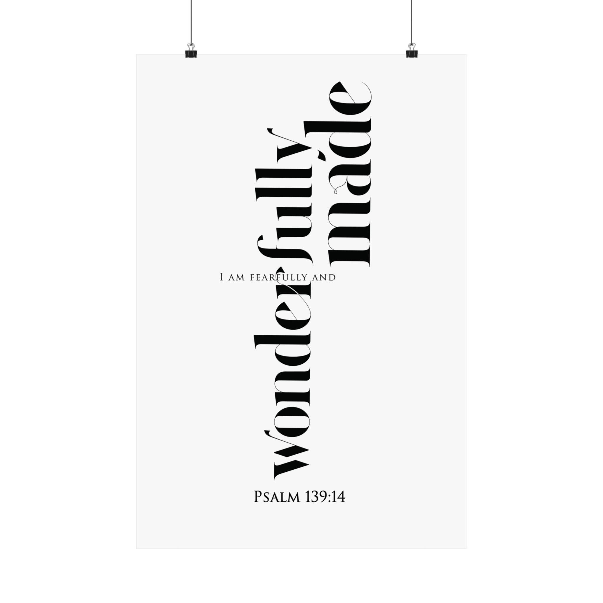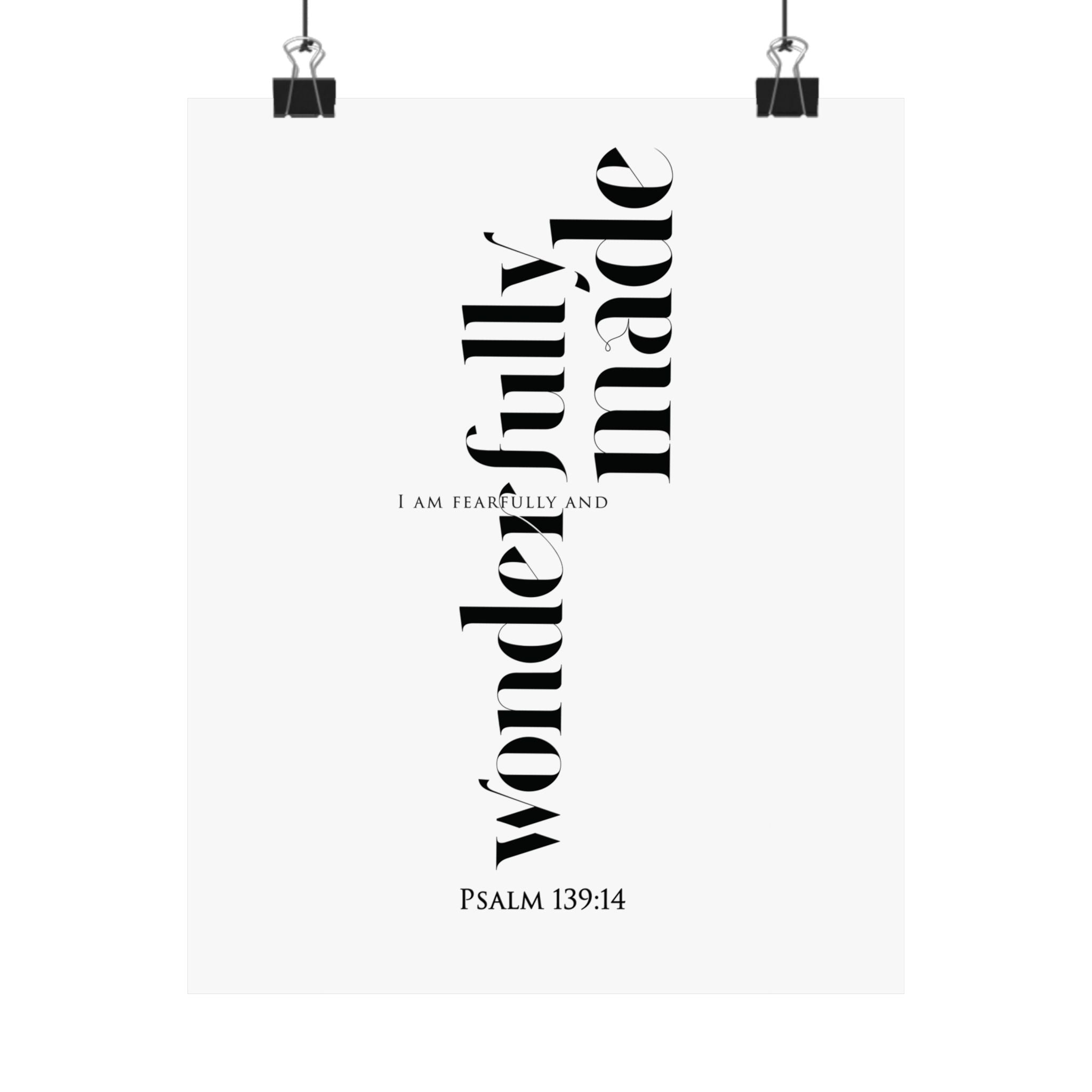 Faith Culture Fearfully and Wonderfully Made Psalm 139:14 Christian Matte Poster | Minimal Typography Scripture Wall Art Print