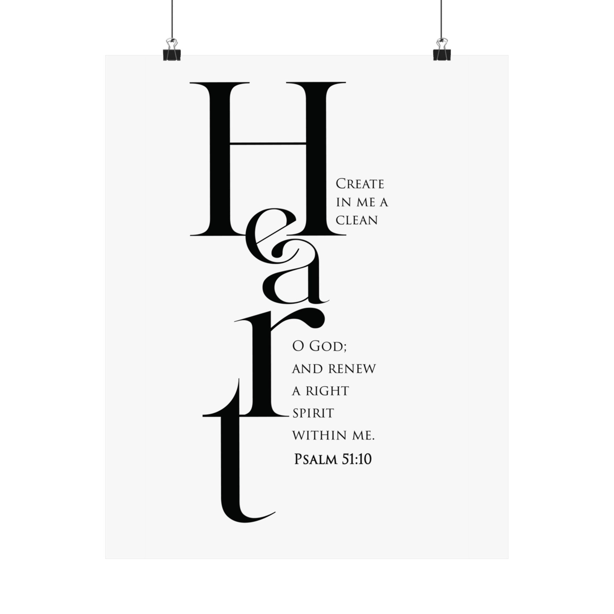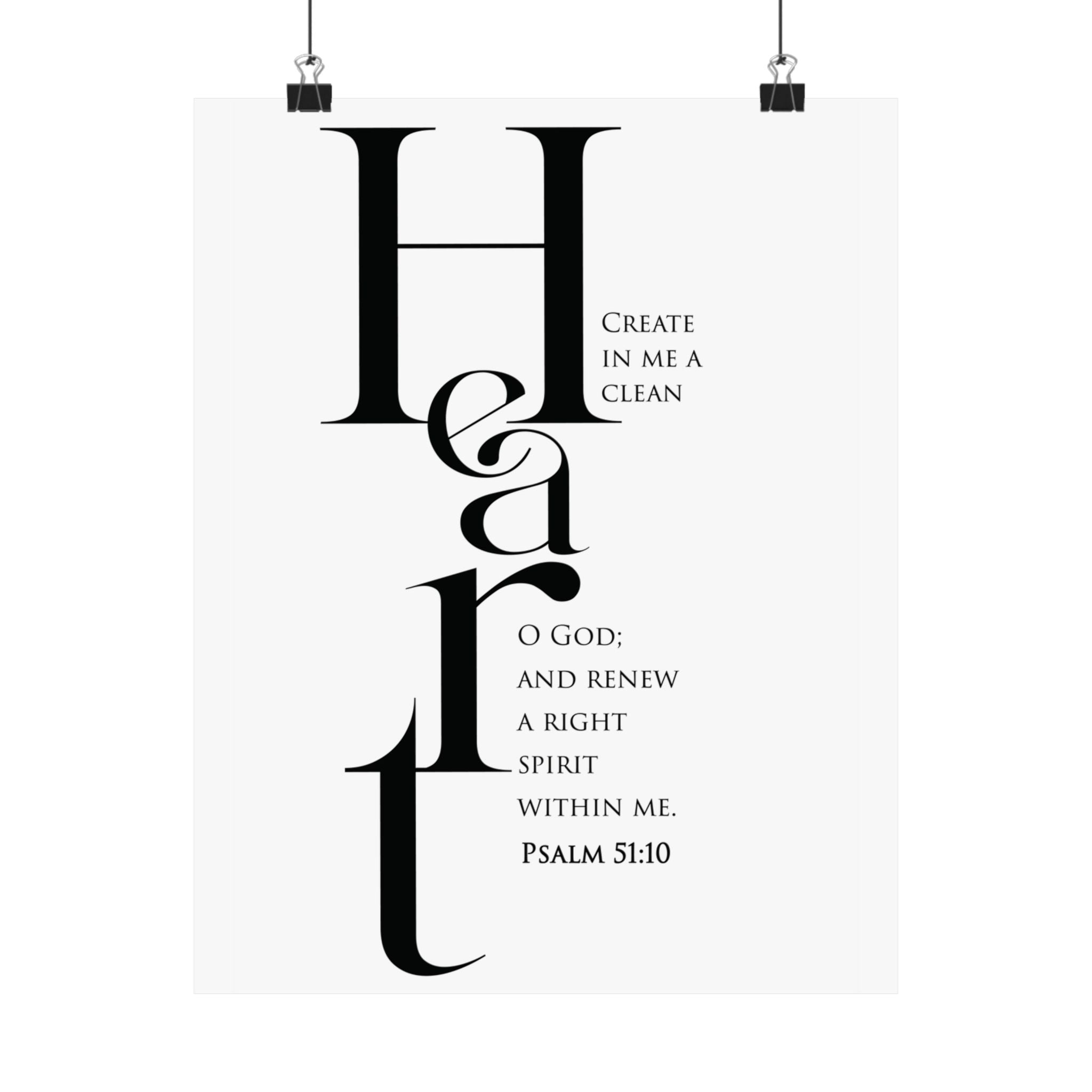 Faith Culture Create in Me a Clean Heart Psalm 51:10 Christian Matte Poster | Minimal Scripture Wall Art Print