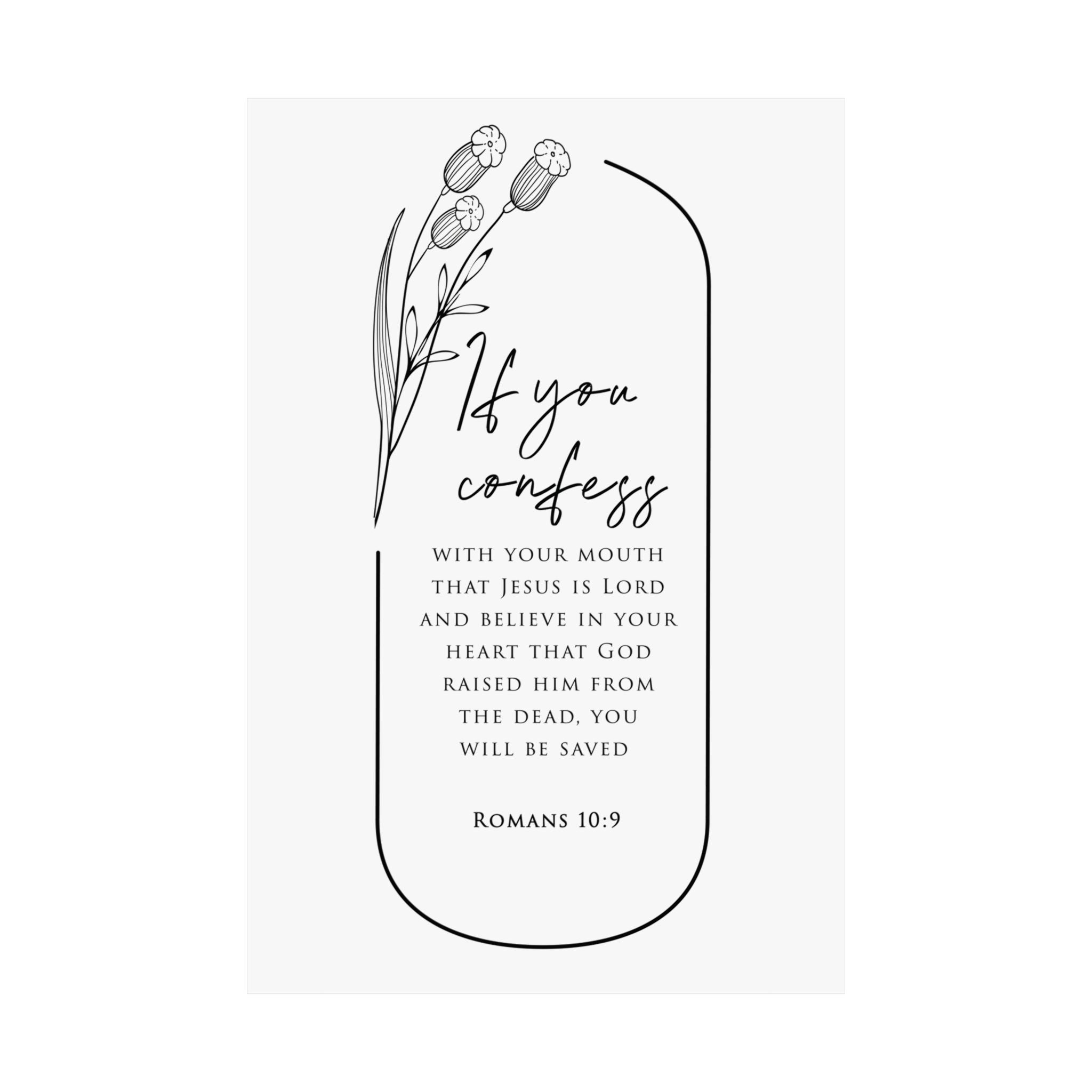 Faith Culture If You Confess Romans 10:9 Christian Matte Poster | You Will Be Saved Scripture Wall Art Print