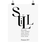 Faith Culture Be Still Psalm 37:7 Christian Matte Poster | Waiting on the Lord Scripture Wall Art Print