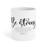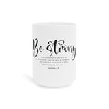 Faith Culture Be Strong Scripture Mug – White | Joshua 1:9 Christian Courage Coffee Cup