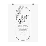 Faith Culture But God Romans 5:8 Christian Matte Poster | Christ Died For Us Scripture Wall Art Print