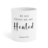 Faith Culture By His Stripes We Are Healed Mug – White | Isaiah 53:5 Christian Comfort Cup