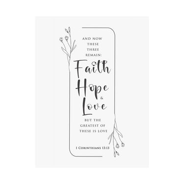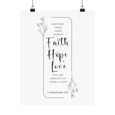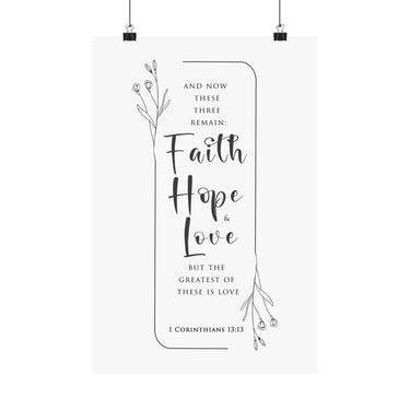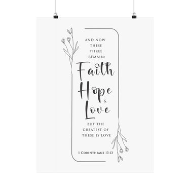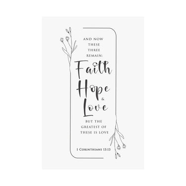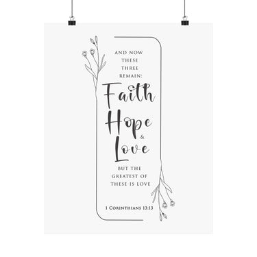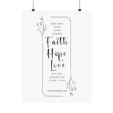 Faith Culture Faith Hope and Love 1 Corinthians 13:13 Christian Matte Poster | The Greatest Is Love Scripture Wall Art Print