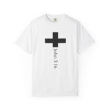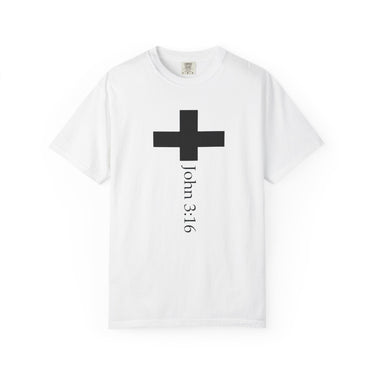 Faith Culture - John 3:16 Cross Garment Dyed T Shirt – White | Comfort Colors Christian Tee