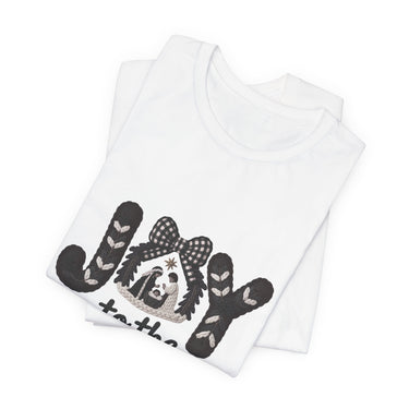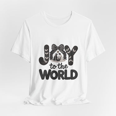 Faith Culture - Joy To The World Nativity Letters Unisex T-Shirt – White | Christian Christmas Graphic Tee