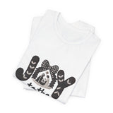 Celebrate the message of Christmas with a tee that looks like it was knitted just for you. The word “JOY” is stitched in chunky, yarn-inspired letters with a gingham bow at the top and the Holy Family nestled inside the “O.” Beneath, “to the WORLD” anchors the design in bold, friendly lettering. The monochrome palette keeps things modern and minimalist, pairing beautifully with jeans, leggings, or layered flannels. Lightweight Airlume cotton makes this Faith Culture t-shirt soft enough for all-day wear, from decorating the tree to singing carols with friends. It is a simple way to share the Gospel story and the joy that came when Christ was born.
