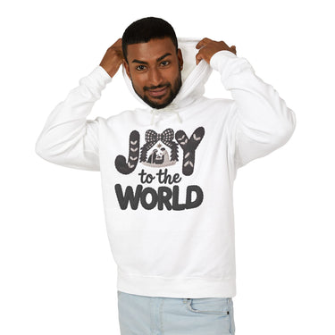 Wrap yourself in the story of Christmas with this Joy to the World nativity hoodie. The knitted-style JOY letters frame a manger scene under a checked bow, with Mary, Joseph, and the newborn King gathered beneath a shining star and the words “to the WORLD” anchoring the design. It is a beautiful, wearable way to share the good news of Jesus wherever you go.