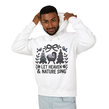 Faith Culture - Let Heaven and Nature Sing Unisex Christian Hoodie – White | Nativity Christmas Worship Sweatshirt