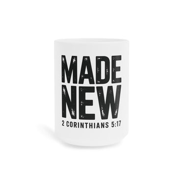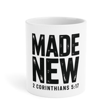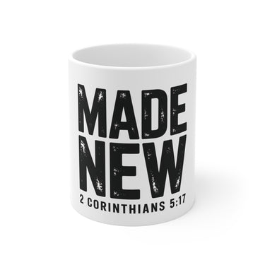 Start your day with a quiet, confident reminder of renewal. This Faith Culture white ceramic mug features bold distressed “MADE NEW” lettering with the scripture reference 2 Corinthians 5:17, a simple faith forward statement that fits naturally into morning routines, Bible study, and moments of reflection.
