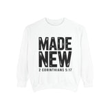Faith Culture Made New Garment Dyed Crewneck Sweatshirt – White | 2 Corinthians 5:17 Christian Sweatshirt