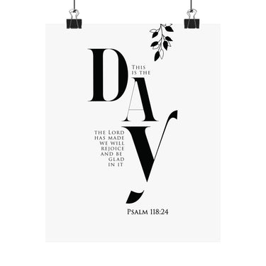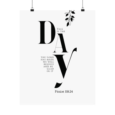Bright and uplifting, this matte vertical poster features “This is the day the Lord has made; we will rejoice and be glad in it,” paired with Psalm 118:24. The minimalist black and white typography with a simple botanical accent brings a fresh, joyful tone to kitchens, entryways, dining spaces, and morning routines. A meaningful gift for housewarmings, weddings, new seasons, or anyone who wants to start each day with gratitude and praise. Museum grade paper and giclée printing keep the text crisp and the blacks rich, while the matte finish stays soft and glare free. Available in 8 sizes for easy styling.