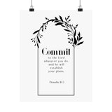 Faith Culture Commit Proverbs 16:3 Christian Matte Poster | Floral Scripture Wall Art Print