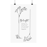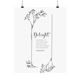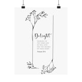 Faith Culture Delight Yourself In The Lord Psalm 37:4 Christian Matte Poster | Minimal Floral Scripture Wall Art Print
