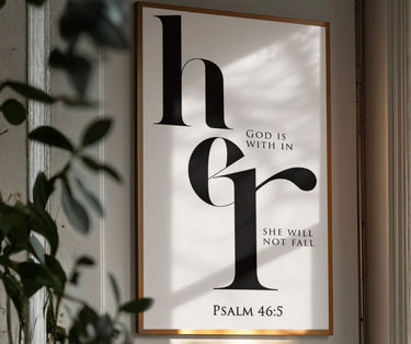 Discover the abiding strength within with our God Is Within Her - Psalm 46:5 Wall Art, a testament to the steadfast presence of God, as depicted in the Psalms.