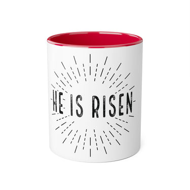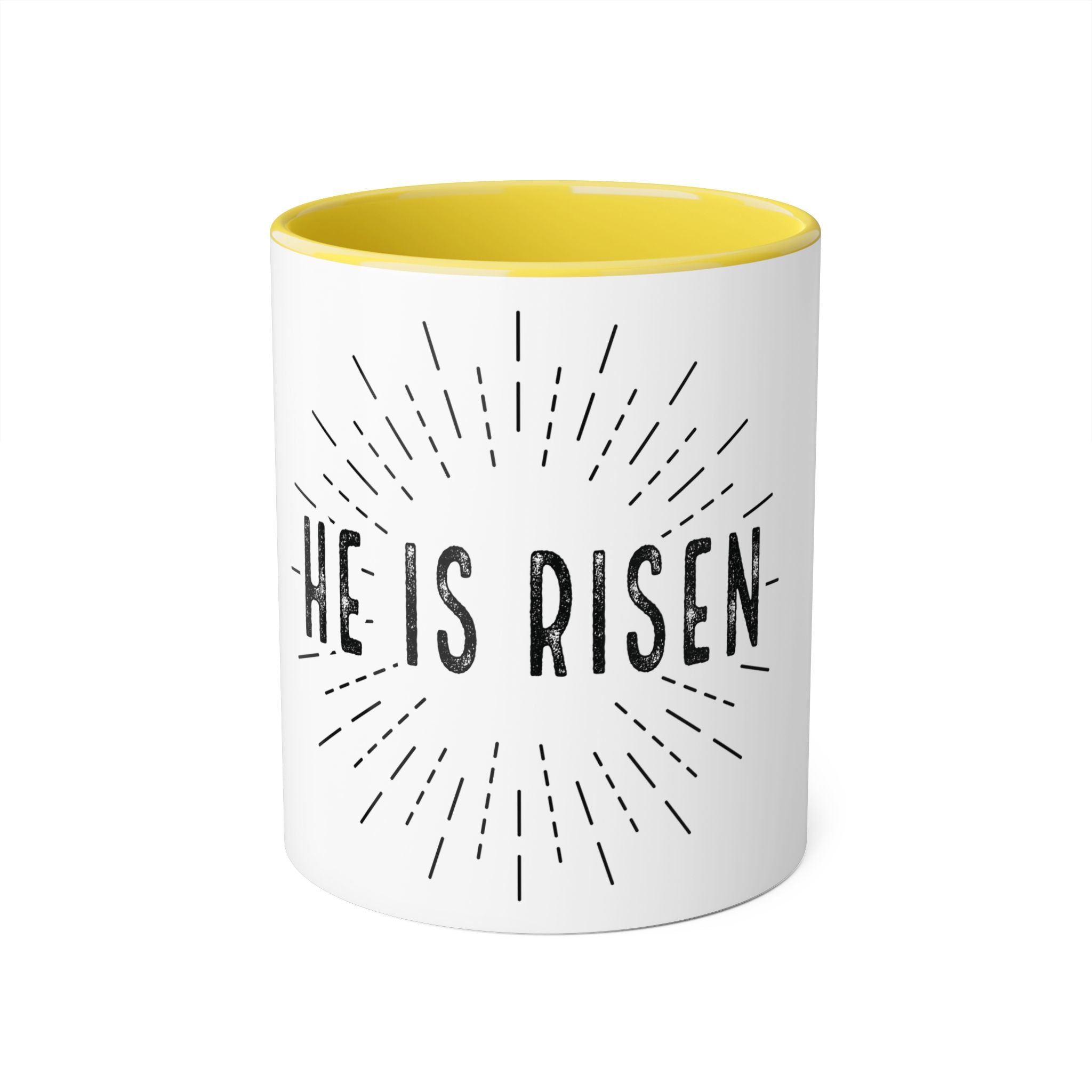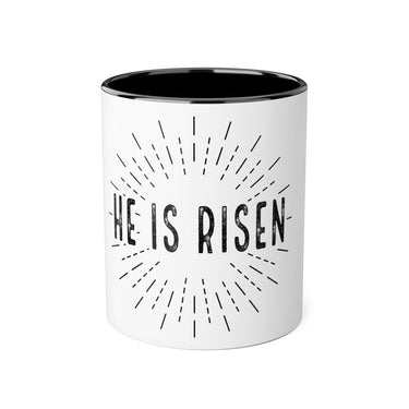 Faith Culture - He Is Risen Accent Mug, 11oz – Christian Easter Coffee Mug | Vintage Style Resurrection Design