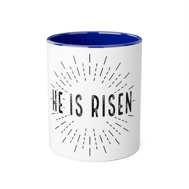 Bring a quiet sense of hope to your morning routine with our Faith Culture He Is Risen Accent Mug. This 11 oz ceramic mug features a clean white exterior paired with a contrasting interior and handle, creating a timeless look that highlights the distressed “He Is Risen” text and radiant sunburst design. Inspired by the beauty of renewal and the light of the resurrection, it is a simple yet meaningful piece for Easter mornings, spring gatherings, or everyday moments of reflection.
