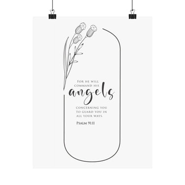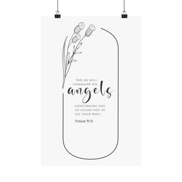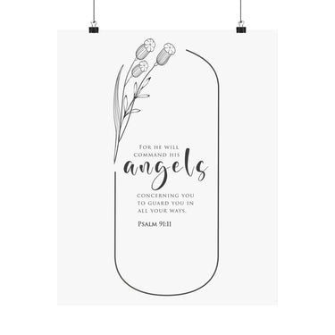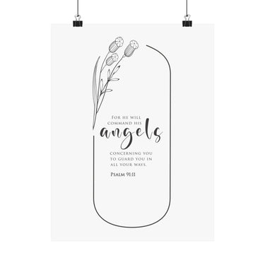 Faith Culture He Will Command His Angels Psalm 91:11 Christian Matte Poster | Minimal Floral Scripture Wall Art Print