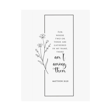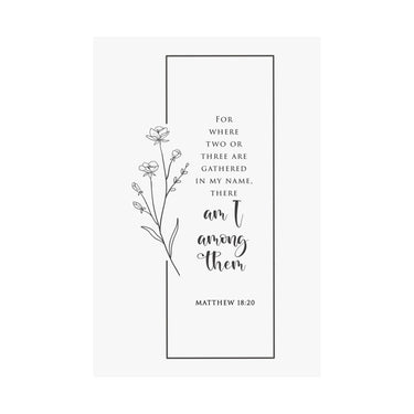 Peaceful and faith affirming, this matte vertical poster highlights the promise of God’s presence with the phrase “I am among them,” paired with Matthew 18:20. The balanced typography and minimalist floral illustration make it a beautiful reminder for shared faith and community.