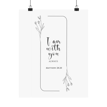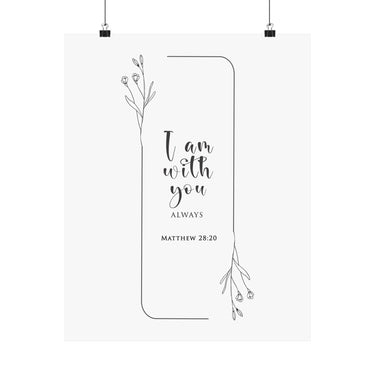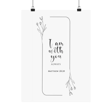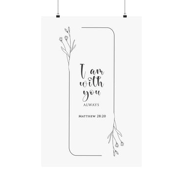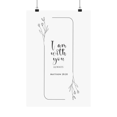 Faith Culture I Am With You Always Matthew 28:20 Christian Matte Poster | Minimal Floral Scripture Wall Art Print