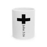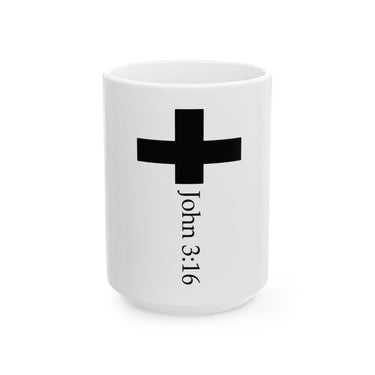 Faith Culture - John 3:16 Cross Ceramic Mug – White | Minimalist Christian Coffee Mug (11oz, 15oz)