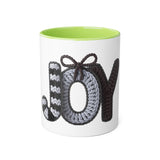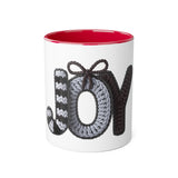 Wrap your hands around a little bit of Christmas comfort. Our Knit Joy Christian Christmas Mug features the word “JOY” rendered in a soft, sweater like knit illustration in neutral black, white, and grey tones. It feels like your favorite winter jumper in mug form, bringing a cozy touch to quiet mornings, evening cocoa, and Advent reflections.