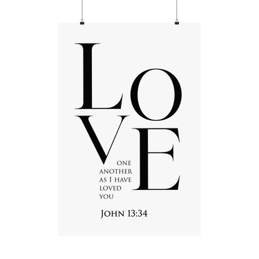 Clean and heartfelt, this matte vertical poster features “LOVE” in bold modern typography, paired with John 13:34. The simple black and white design keeps the message front and center, making it a beautiful daily reminder to live out Christlike love at home and beyond.